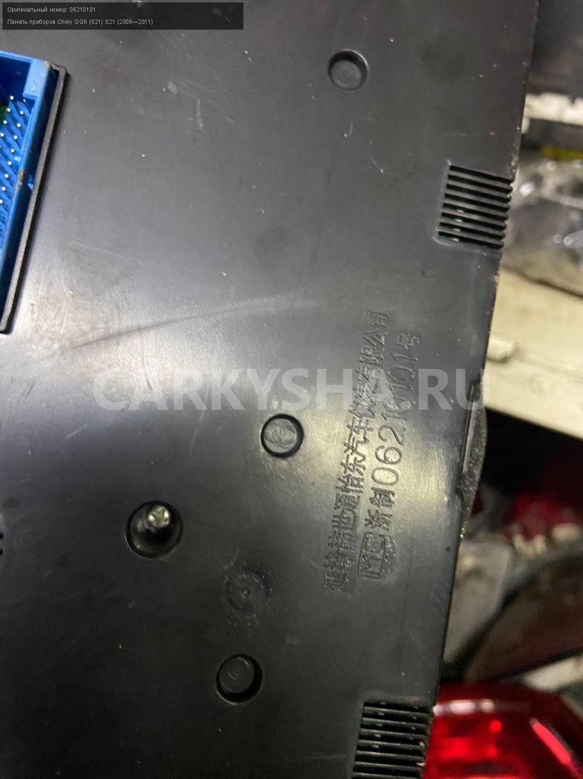 Chery QQ6, 1.1 МКПП, Щиток приборов.\nАртикул: 4797\n\nОриг. номер: 06210101\nПроизводитель: CHERY\nПримечание:Чери QQ6. 1.1 МКПП, щиток приборов, бу. \n\nМарка: Chery\nМодель: QQ6 (S21) S21 (2006—2011)\nСовместимости: Chery QQ6 (S21) S21 (2006—2011)\nСовместимость: