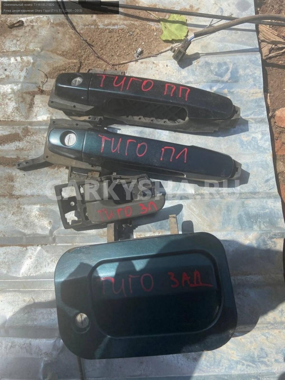 Chery Tiggo (T11), ручки дверей\nАртикул: 2666\n\nОриг. номер: T116105210DQ\nПроизводитель: CHERY\nПримечание:Черри Тиго Т11, ручки дверей, б/у, цена за шт.\n\nМарка: Chery\nМодель: Tiggo (T11) T11 (2005—2013)\nГод выпуска: 2008\nКузов тип: Внедорожник\nДвигатель номер: SQR481FC\nМодель двигателя: инжектор\nОбъем: 1.8\nТопливо: Бензин\nКоробка: Механика\nЦвет: Синий\nПраво/Лево: Право/Лево\nПеред/Зад: Перед/Зад\nСовместимости: Chery Tiggo (T11) T11 (2005—2013) 1.8 MT (132 л.с.)\nСовместимость: