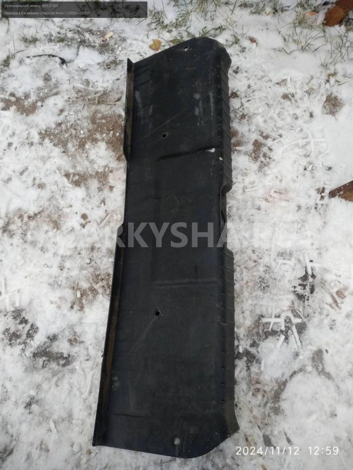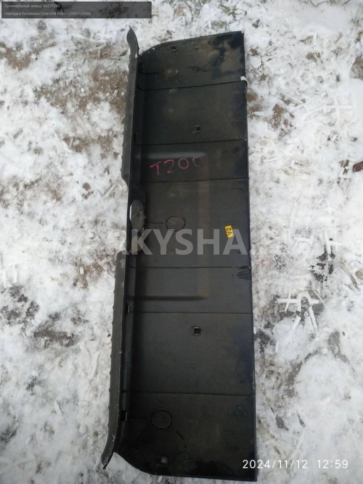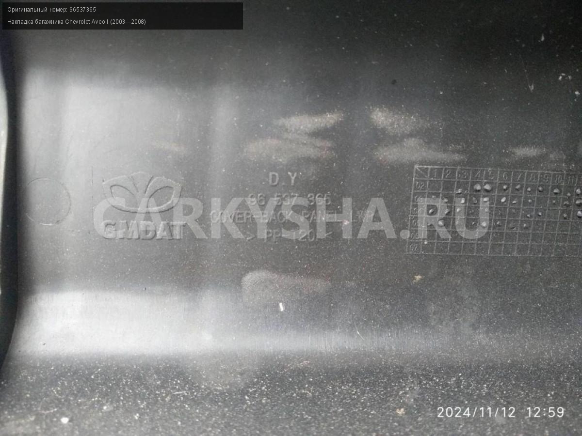 Chevrolet Aveo T200-250, замковая панель.\nАртикул: 6284\n\nОриг. номер: 96537365\nПроизводитель: GENERAL MOTORS\nПримечание:Шевроле Авео Т200-250, замковая панель ( накладка замка багажника), б/у. \n\nМарка: Chevrolet\nМодель: Aveo I (2003—2008)\nГод выпуска: 2007\nКузов тип: Хетчбэк\nДвигатель номер: B12S1\nМодель двигателя: инжектор\nОбъем: 1.2\nТопливо: Бензин\nКоробка: Механика\nЦвет: Темно-серый\nСовместимости: Chevrolet Aveo I (2003—2008) 1.2 MT (72 л.с.)\nСовместимость: