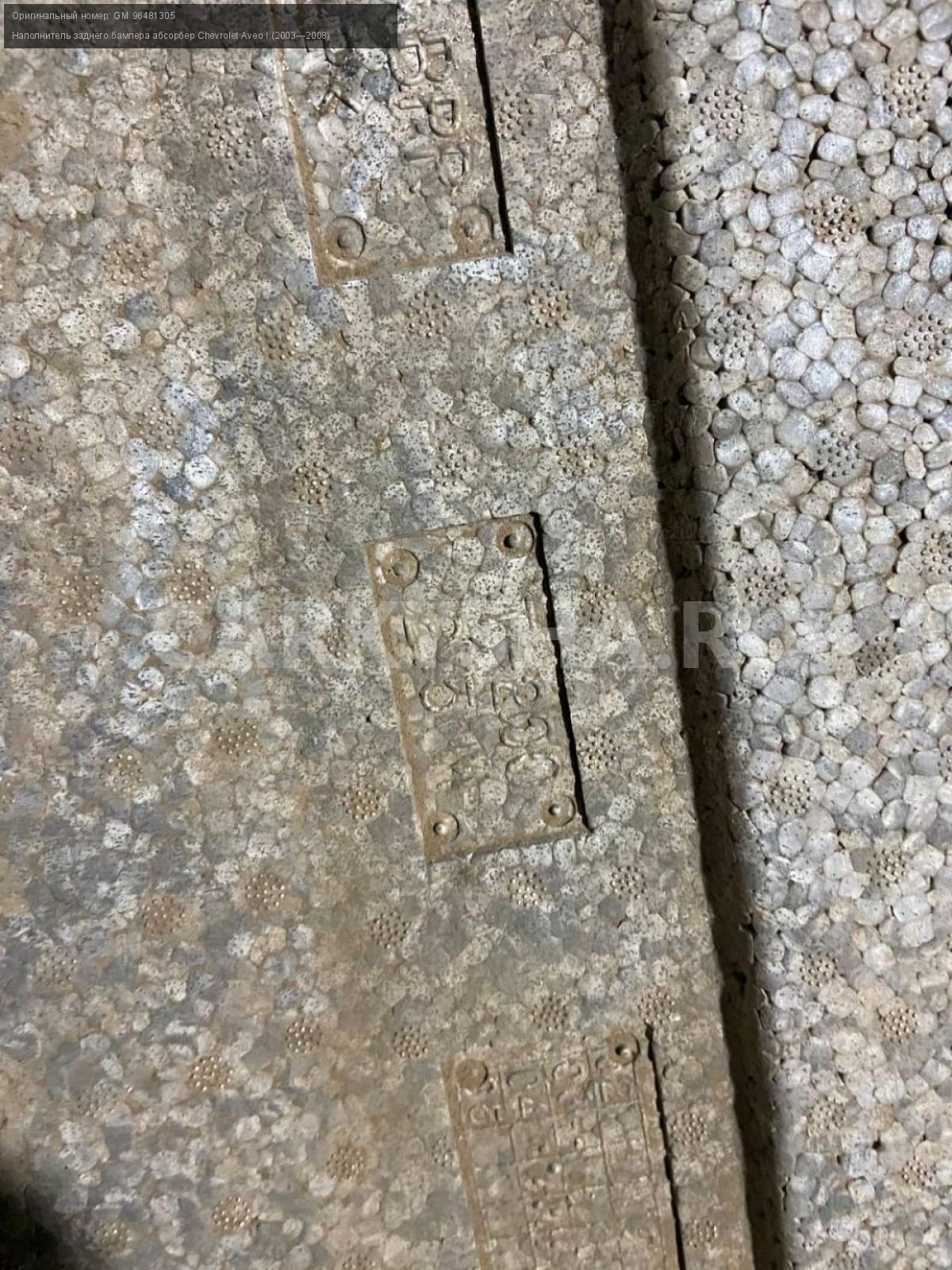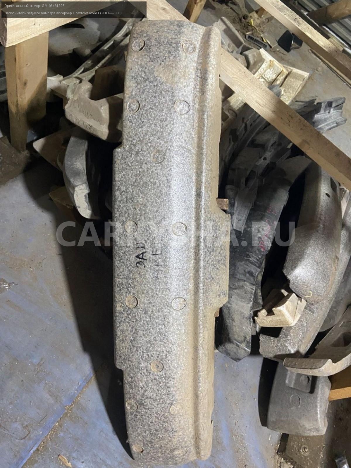 Chevrolet Aveo, Т200, наполнитель заднего бампера.\nАртикул: 4162\n\nОриг. номер: GM 96481305\nПроизводитель: CHEVROLET\nПримечание:Шевроле Авео, Т200, наполнитель заднего бампера, б/у. \n\nМарка: Chevrolet\nМодель: Aveo I (2003—2008)\nГод выпуска: 2007\nКузов тип: Хетчбэк\nДвигатель номер: B12S1\nМодель двигателя: инжектор\nОбъем: 1.2\nТопливо: Бензин\nКоробка: Механика\nЦвет: Темно-серый\nПеред/Зад: Зад\nСовместимости: Chevrolet Aveo I (2003—2008) 1.2 MT (72 л.с.)\nСовместимость: