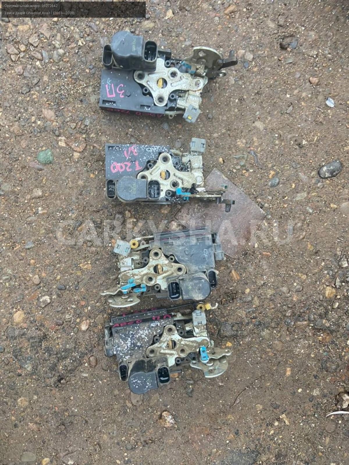 Chevrolet Aveo Т200 хэтчбек, замки дверей.\nАртикул: 3801\n\nОриг. номер: 96272642\nПроизводитель: CHEVROLET\nПримечание:Шевроле Авео Т200, хэтчбек, замки дверей, б/у. Цена за штуку. \n\nМарка: Chevrolet\nМодель: Aveo I (2003—2008)\nГод выпуска: 2007\nКузов тип: Хетчбэк\nДвигатель номер: B12S1\nМодель двигателя: инжектор\nОбъем: 1.2\nТопливо: Бензин\nКоробка: Механика\nЦвет: Темно-серый\nПраво/Лево: Право/Лево\nПеред/Зад: Перед/Зад\nСовместимости: Chevrolet Aveo I (2003—2008) 1.2 MT (72 л.с.)\nСовместимость: