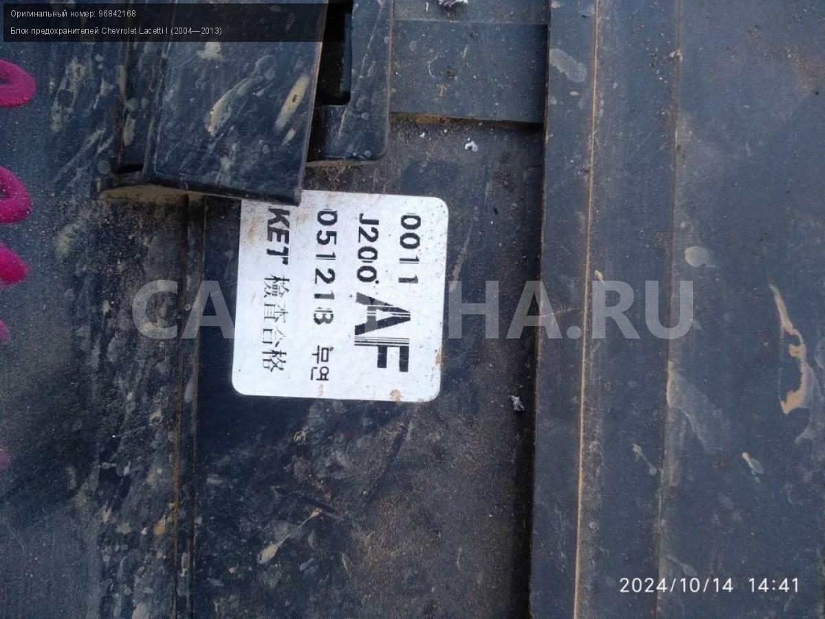 Chevrolet Lacetti, блок предохранителей подкапотн.\nАртикул: 5952\n\nОриг. номер: 96842168\nПроизводитель: GENERAL MOTORS\nПримечание:Шевроле Лачетти , блок предохранителей подкапотный, б/у. \n\nМарка: Chevrolet\nМодель: Lacetti I (2004—2013)\nГод выпуска: 2006\nКузов тип: Хетчбэк\nДвигатель номер: F16D3\nМодель двигателя: инжектор\nОбъем: 1.6\nТопливо: Бензин\nКоробка: Механика\nЦвет: Серебристый\nСовместимости: Chevrolet Lacetti I (2004—2013) 1.6 MT (109 л.с.)\nСовместимость: