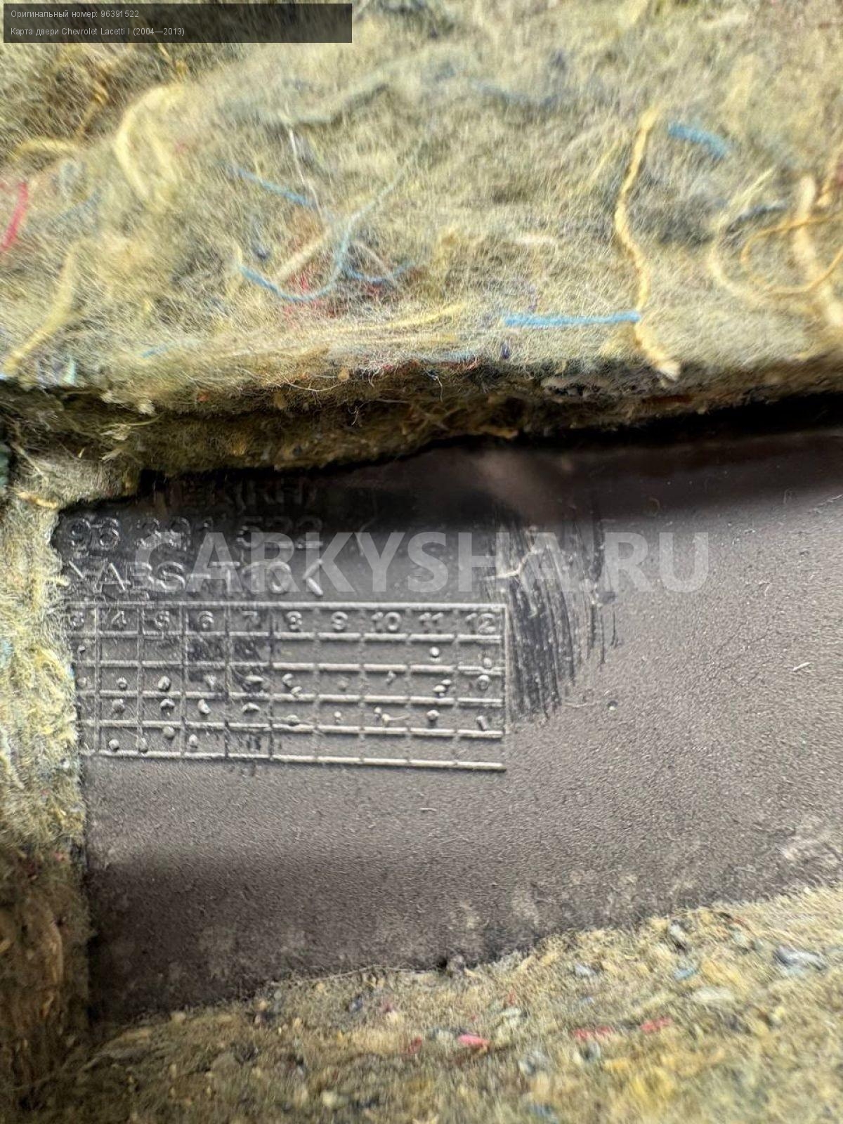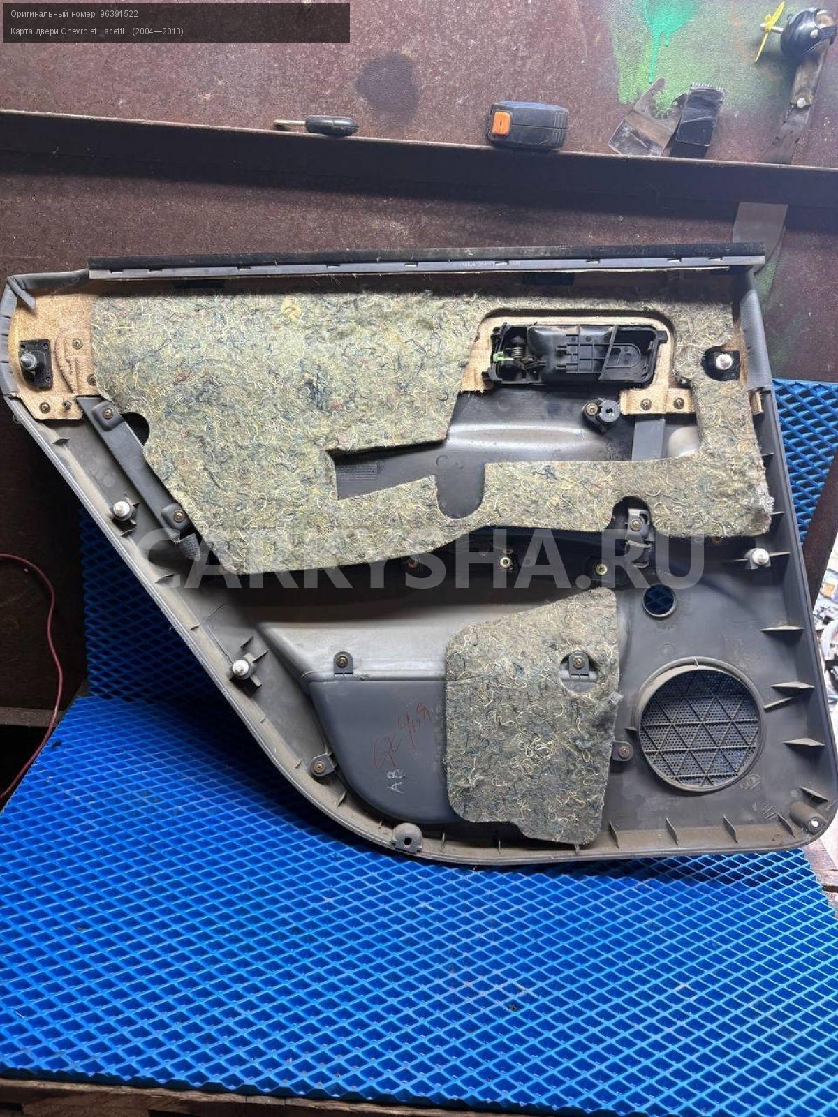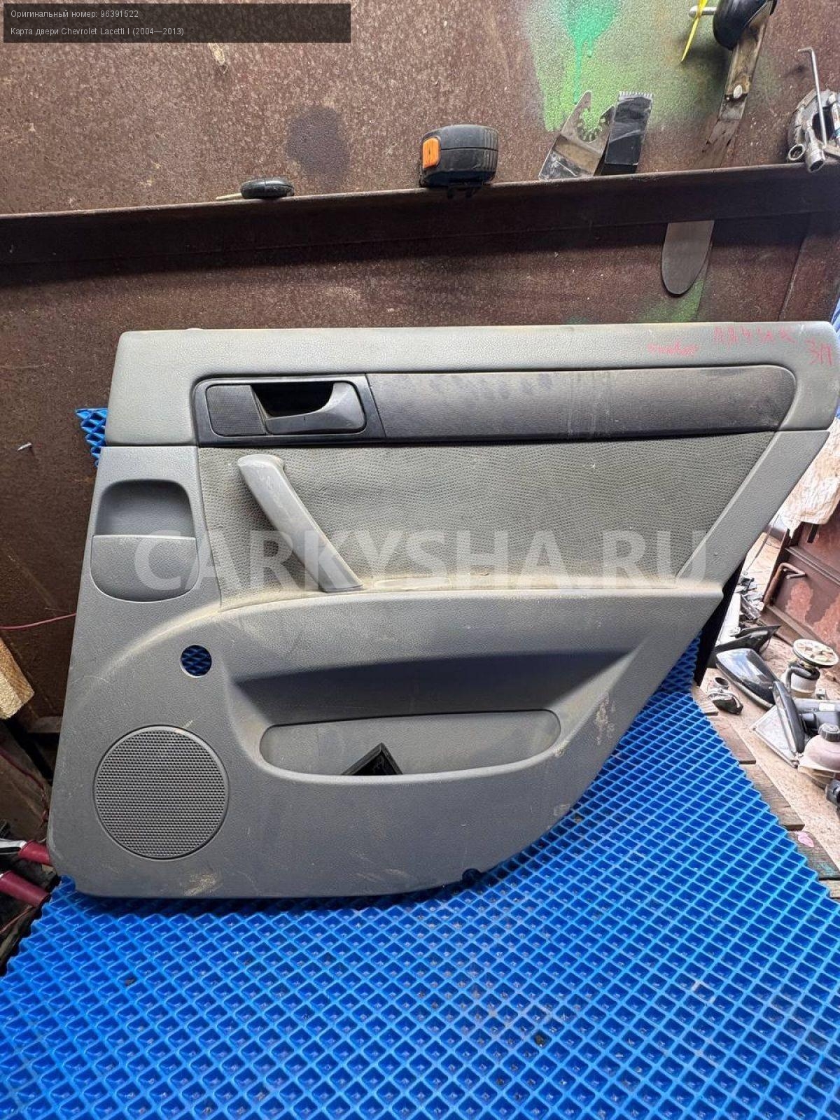 Chevrolet Lacetti унив, обшивка двери задн правой.\nАртикул: 8505\n\nОриг. номер: 96391522\nПроизводитель: GENERAL MOTORS\nПримечание:Шевроле Лачетти универсал, обшивка двери , карта двери задней правой, б/у. \n\nМарка: Chevrolet\nМодель: Lacetti I (2004—2013)\nГод выпуска: 2006\nКузов тип: Хетчбэк\nДвигатель номер: F16D3\nМодель двигателя: инжектор\nОбъем: 1.6\nТопливо: Бензин\nКоробка: Механика\nЦвет: Серебристый\nПраво/Лево: Право\nПеред/Зад: Зад\nСовместимости: Chevrolet Lacetti I (2004—2013) 1.6 MT (109 л.с.)\nСовместимость: