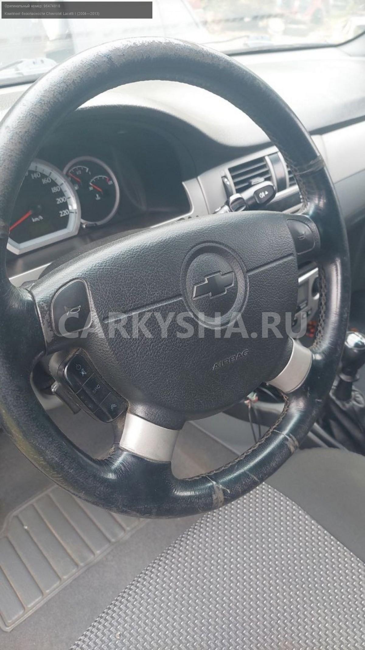 Chevrolet Lacetti, седан, комплект безопасности.\nАртикул: 5621\n\nОриг. номер: 96474818\nПроизводитель: GENERAL MOTORS\nПримечание:Шевроле Лачетти седан, комплект безопасности, б/у. \n\nМарка: Chevrolet\nМодель: Lacetti I (2004—2013)\nГод выпуска: 2008\nКузов тип: Седан\nДвигатель номер: F16D3\nМодель двигателя: инжектор\nОбъем: 1.6\nТопливо: Бензин\nКоробка: Механика\nЦвет: Черный\nСовместимости: Chevrolet Lacetti I (2004—2013) 1.6 MT (109 л.с.)\nСовместимость: