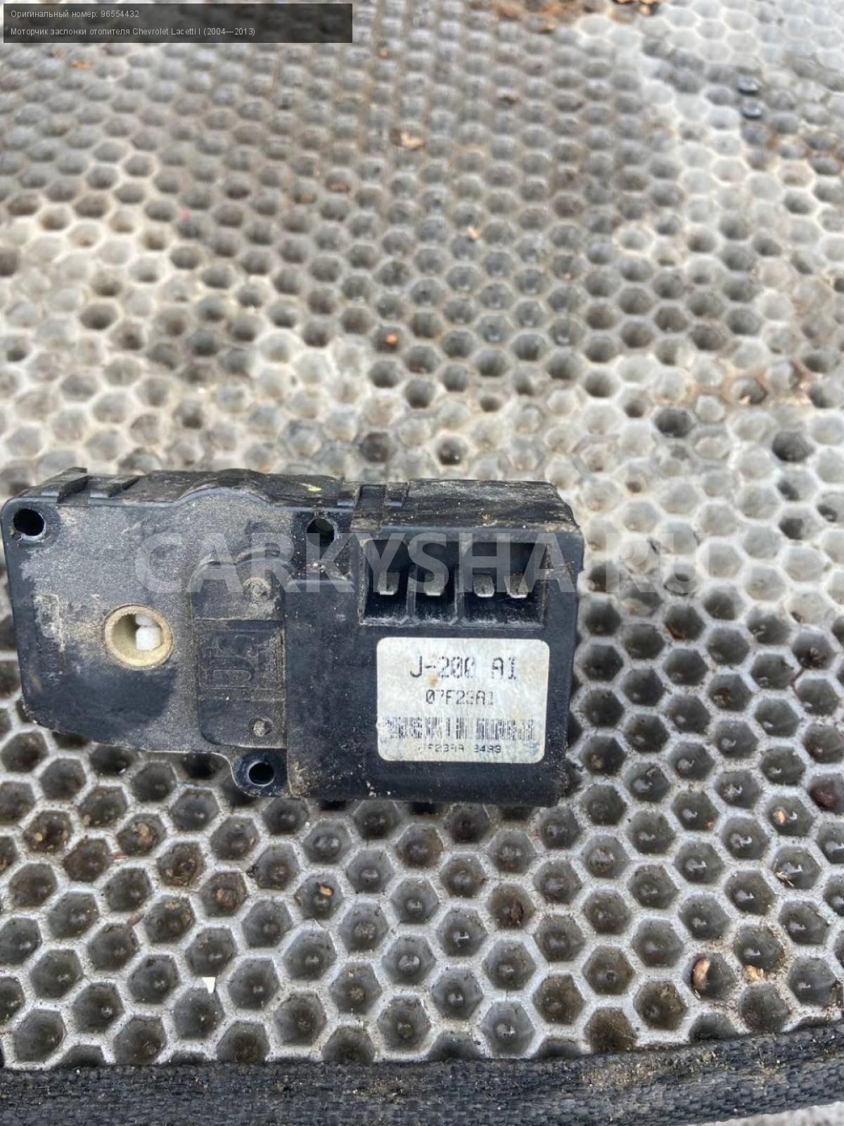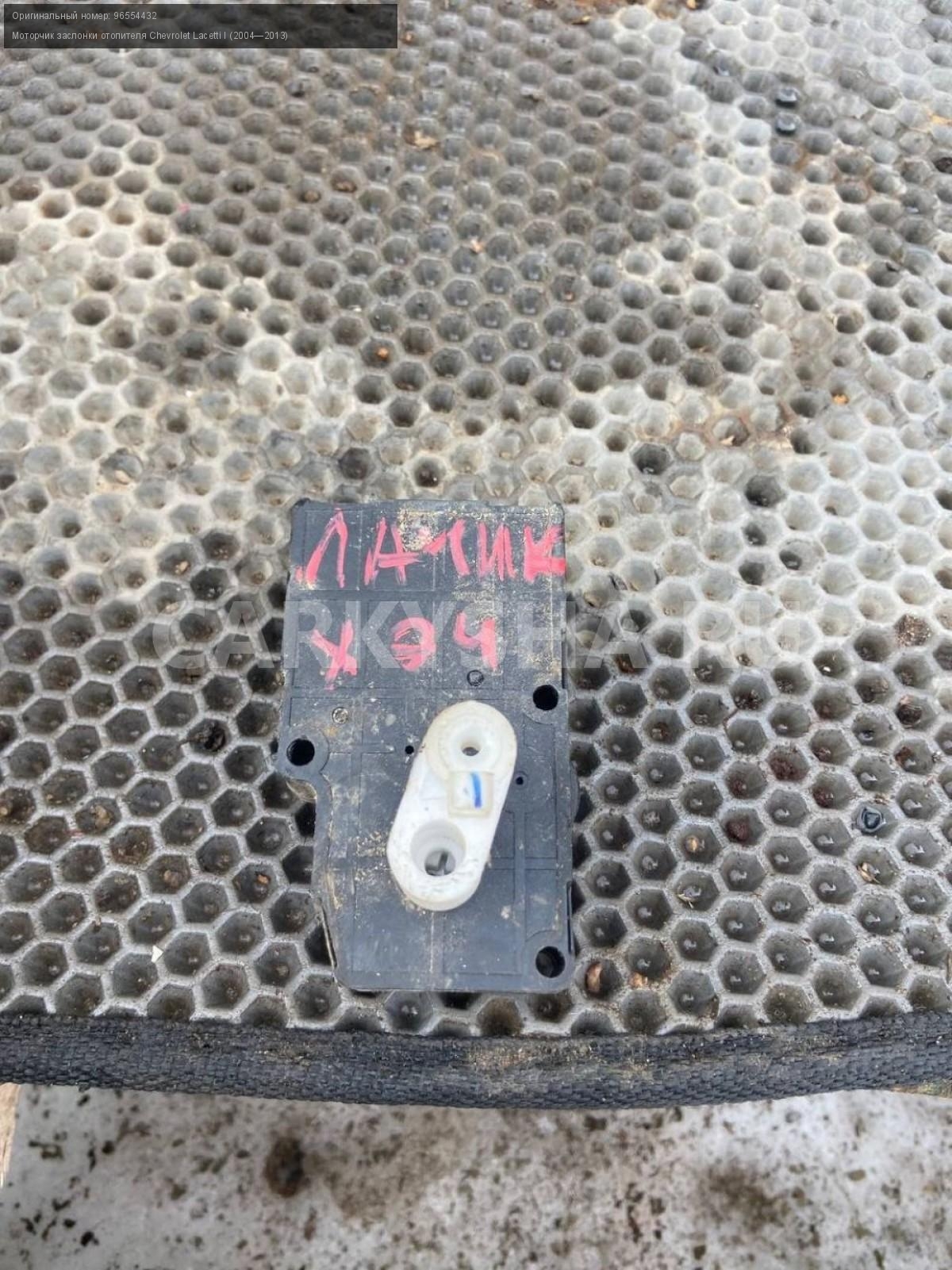 Chevrolet Lacetti, Моторчик заслонки печки.\nАртикул: 7184\n\nОриг. номер: 96554432\nПроизводитель: GENERAL MOTORS\nПримечание:Шевроле Лачетти, моторчик заслонки печки, сервопривод отопителя, б/у. \n\nМарка: Chevrolet\nМодель: Lacetti I (2004—2013)\nГод выпуска: 2008\nКузов тип: Седан\nДвигатель номер: F16D3\nМодель двигателя: инжектор\nОбъем: 1.6\nТопливо: Бензин\nКоробка: Механика\nЦвет: Черный\nСовместимости: Chevrolet Lacetti I (2004—2013) 1.6 MT (109 л.с.)\nСовместимость:
