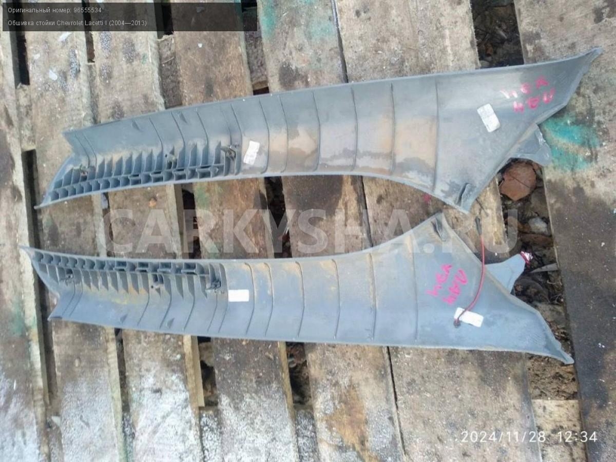Chevrolet Lacetti накладки стоек лобового стекла.\nАртикул: 6471\n\nОриг. номер: 96555534\nПроизводитель: GENERAL MOTORS\nПримечание:Шевроле Лачетти хэтчбек, накладки стоек лобового стекла ( обшивки передних стоек), б/у. Цена за пару. \n\nМарка: Chevrolet\nМодель: Lacetti I (2004—2013)\nГод выпуска: 2006\nКузов тип: Хетчбэк\nДвигатель номер: F16D3\nМодель двигателя: инжектор\nОбъем: 1.6\nТопливо: Бензин\nКоробка: Механика\nЦвет: Серебристый\nПраво/Лево: Право/Лево\nПеред/Зад: Перед\nСовместимости: Chevrolet Lacetti I (2004—2013) 1.6 MT (109 л.с.)\nСовместимость: