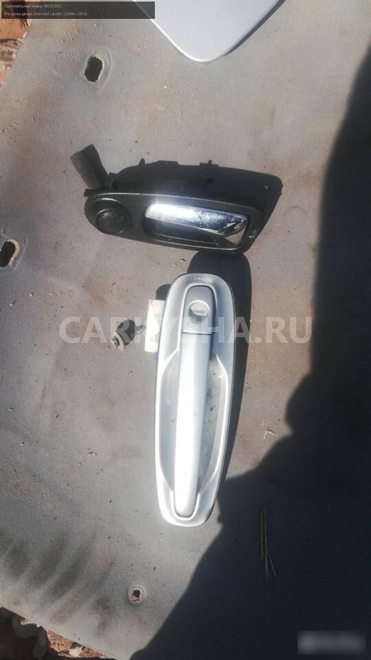 Chevrolet lacetti ручка двери\nАртикул: 512\n\nОриг. номер: 96547952\nПроизводитель: CHEVROLET\nПримечание:Chevrolet lacetti ручка двери,б/у , а так же множество авто в разборе, работаем с регионами отправка тк, выкуп авто после дтп по всей России, отправка тк осуществляется после 100% оплаты, наложенным платежом не работаем, стоимость доставки не рассчитываем\n\nМарка: Chevrolet\nМодель: Lacetti I (2004—2013)\nКузов тип: Универсал\nОбъем: 1.6\nТопливо: Бензин\nКоробка: Механика\nСовместимости: Chevrolet Lacetti I (2004—2013) 1.6 MT (109 л.с.)\nСовместимость: