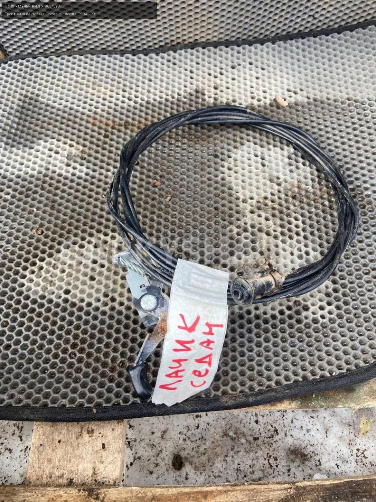Chevrolet Lacetti седан, трос лючка бензобака.\nАртикул: 7197\n\nОриг. номер: 96548937\nПроизводитель: GENERAL MOTORS\nПримечание:Шевроле Лачетти седан, трос открывания лючка бензобака, б/у. \n\nМарка: Chevrolet\nМодель: Lacetti I (2004—2013)\nГод выпуска: 2008\nКузов тип: Седан\nДвигатель номер: F16D3\nМодель двигателя: инжектор\nОбъем: 1.6\nТопливо: Бензин\nКоробка: Механика\nЦвет: Черный\nСовместимости: Chevrolet Lacetti I (2004—2013) 1.6 MT (109 л.с.)\nСовместимость: