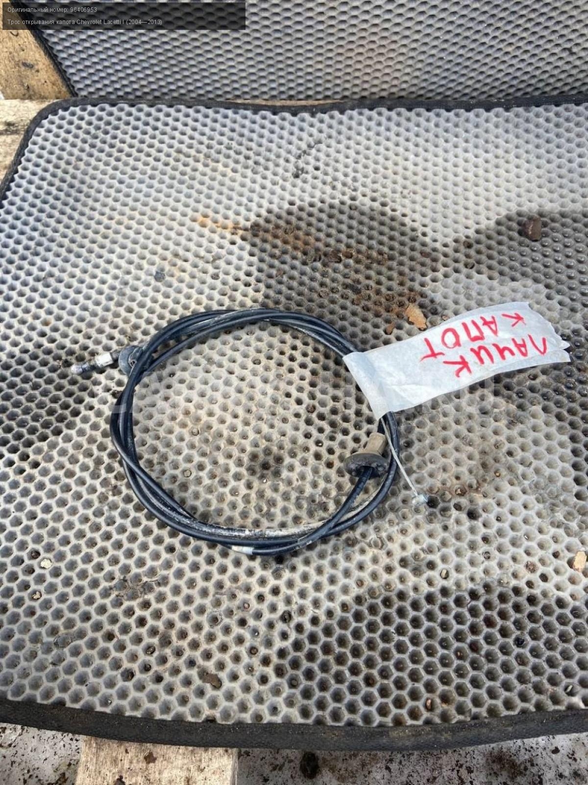 Chevrolet Lacetti , трос капота.\nАртикул: 7261\n\nОриг. номер: 96406953\nПроизводитель: GENERAL MOTORS\nПримечание:Шевроле Лачетти, трос капота, б/у. \n\nМарка: Chevrolet\nМодель: Lacetti I (2004—2013)\nГод выпуска: 2008\nКузов тип: Хетчбэк\nДвигатель номер: F14D3\nОбъем: 1.4\nТопливо: Бензин\nКоробка: Механика\nЦвет: Черный\nСовместимости: Chevrolet Lacetti I (2004—2013) 1.4 MT (94 л.с.)\nСовместимость: