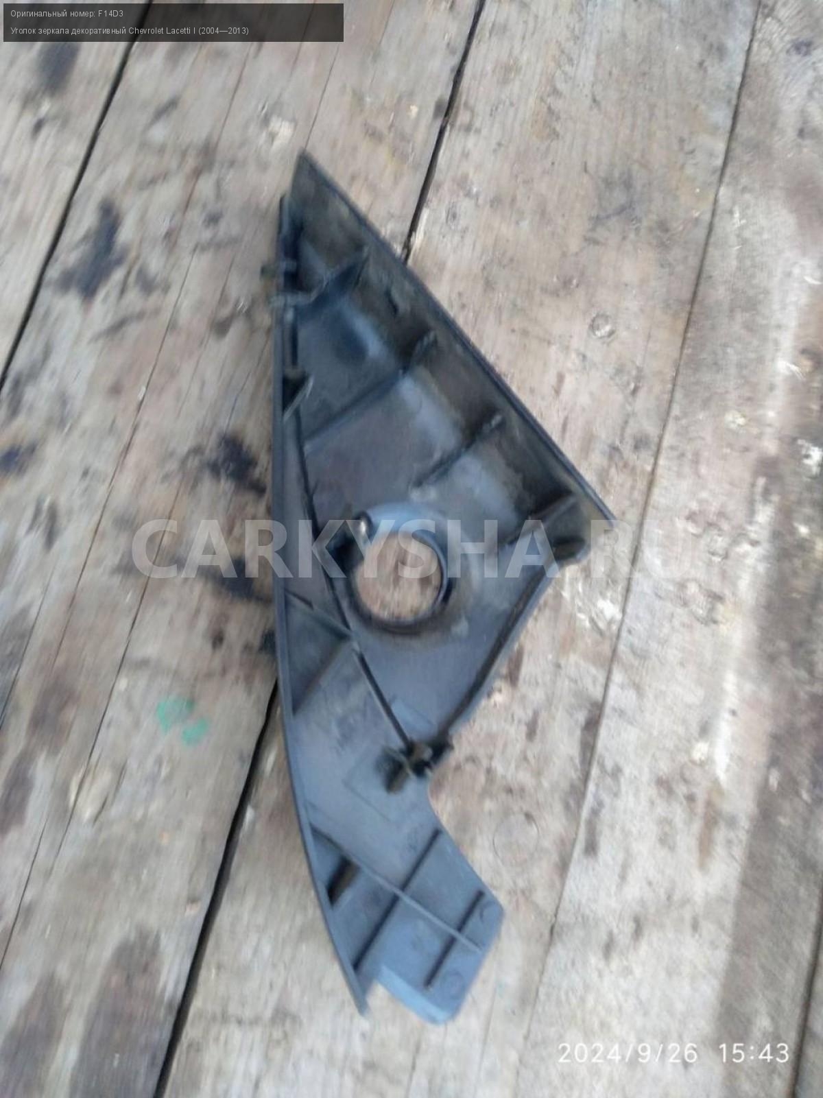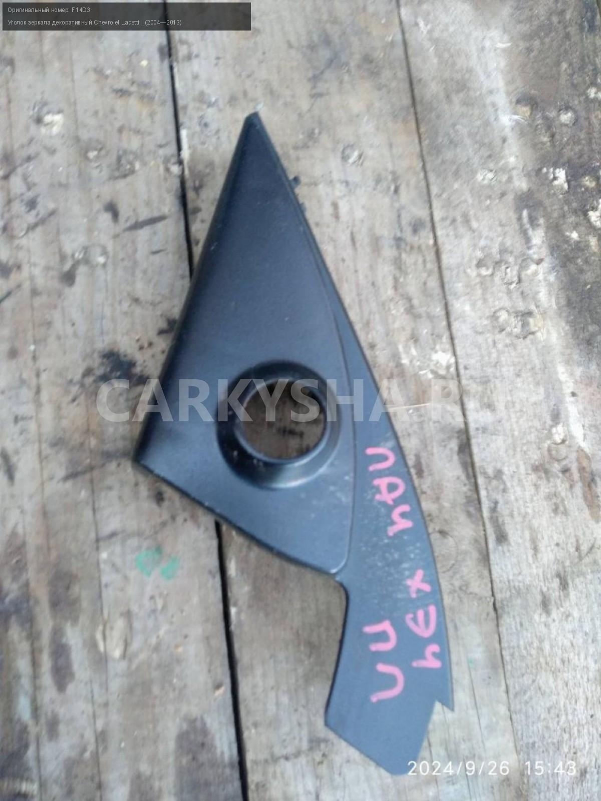 Chevrolet Lacetti, уголок зеркала левый.\nАртикул: 5798\n\nОриг. номер: F14D3\nПроизводитель: GENERAL MOTORS\nПримечание:Шевроле Лачетти , уголок зеркала левый, б/у. \n\nМарка: Chevrolet\nМодель: Lacetti I (2004—2013)\nГод выпуска: 2008\nКузов тип: Хетчбэк\nДвигатель номер: F14D3\nОбъем: 1.4\nТопливо: Бензин\nКоробка: Механика\nЦвет: Черный\nПраво/Лево: Лево\nСовместимости: Chevrolet Lacetti I (2004—2013) 1.4 MT (94 л.с.)\nСовместимость: