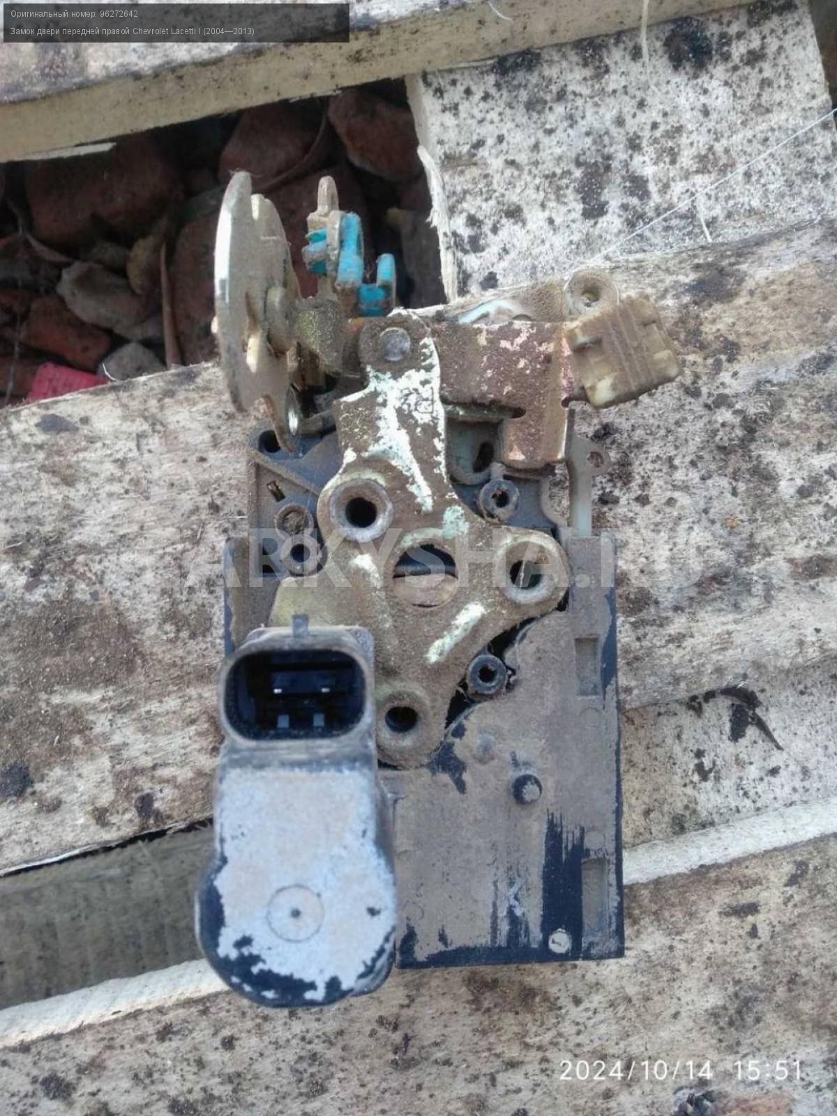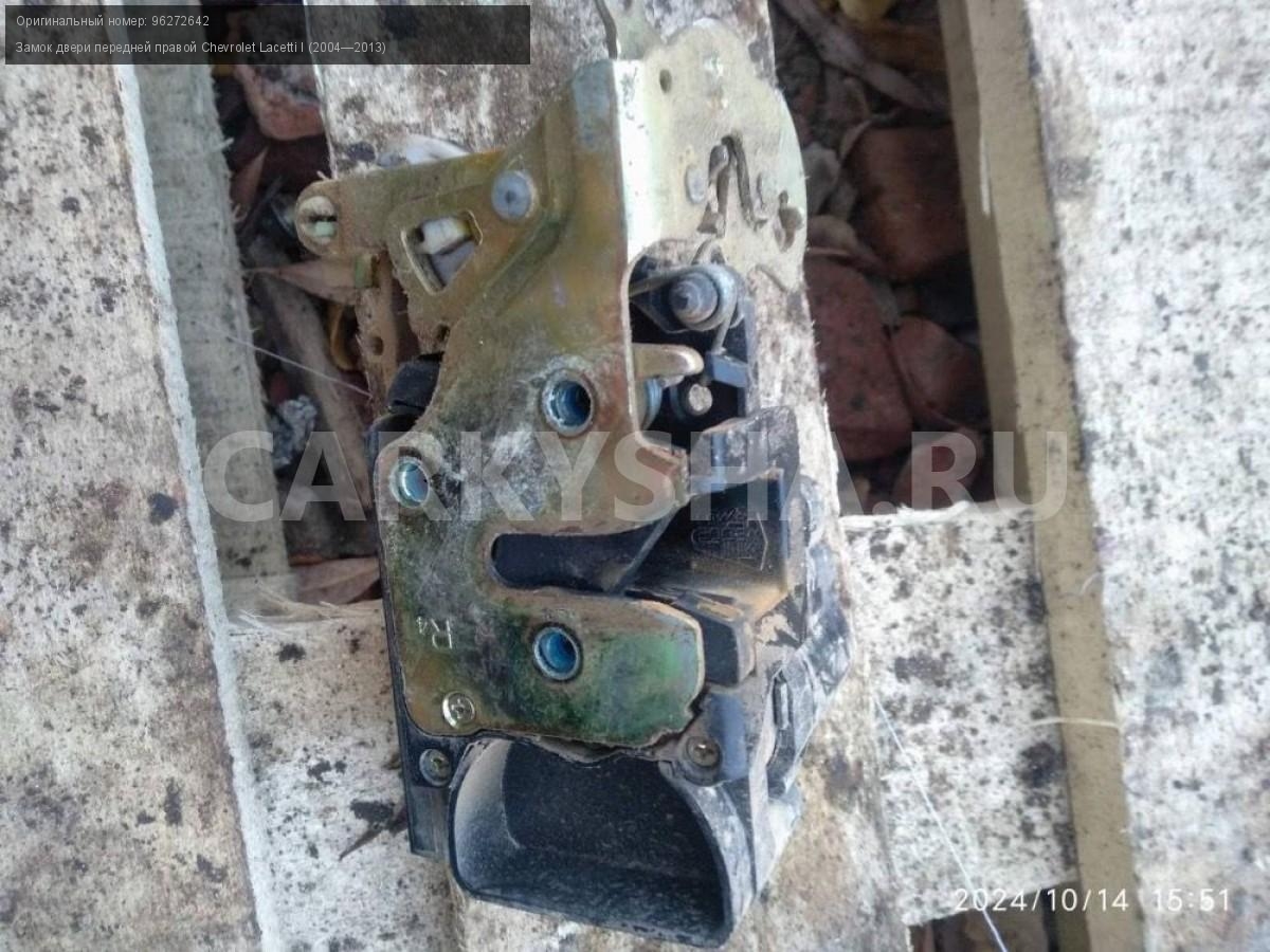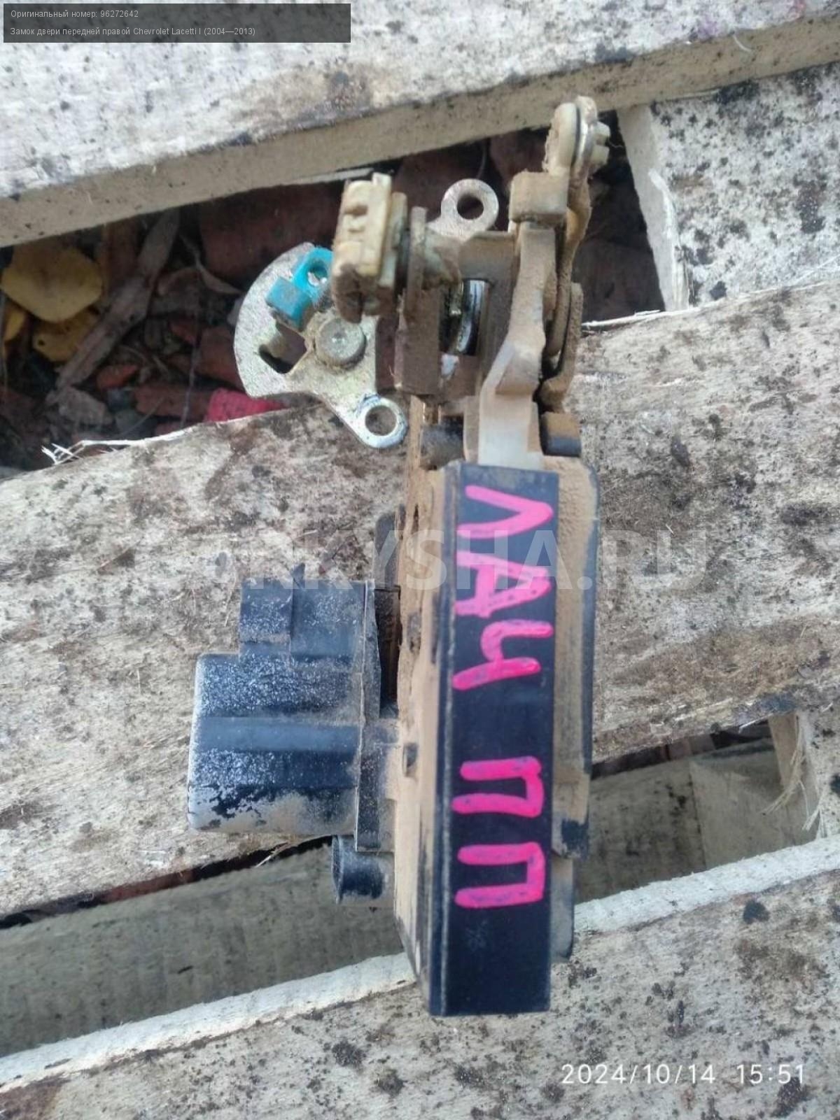 Chevrolet Lacetti, замок двери передней правой.\nАртикул: 5957\n\nОриг. номер: 96272642\nПроизводитель: GENERAL MOTORS\nПримечание:Шевроле Лачетти , замок двери передней правой, б/у. \n\nМарка: Chevrolet\nМодель: Lacetti I (2004—2013)\nГод выпуска: 2006\nКузов тип: Хетчбэк\nДвигатель номер: F16D3\nМодель двигателя: инжектор\nОбъем: 1.6\nТопливо: Бензин\nКоробка: Механика\nЦвет: Серебристый\nПраво/Лево: Право\nПеред/Зад: Перед\nСовместимости: Chevrolet Lacetti I (2004—2013) 1.6 MT (109 л.с.)\nСовместимость:
