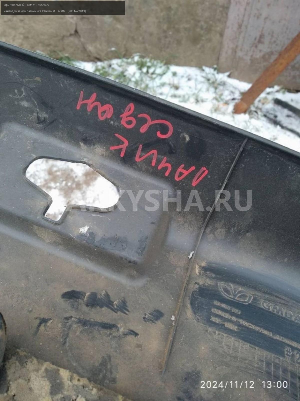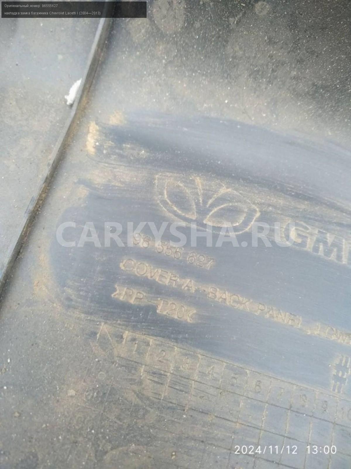 Chevrolet Lacetti седан, замковая панель.\nАртикул: 6346\n\nОриг. номер: 96555627\nПроизводитель: GENERAL MOTORS\nПримечание:Шевроле Лачетти седан , замковая панель, накладка замка багажника, ( обшивка порога багажника) , б/у. \n\nМарка: Chevrolet\nМодель: Lacetti I (2004—2013)\nГод выпуска: 2008\nКузов тип: Седан\nДвигатель номер: F14D3\nМодель двигателя: инжектор\nОбъем: 1.4\nТопливо: Бензин\nКоробка: Механика\nЦвет: Бежевый\nСовместимости: Chevrolet Lacetti I (2004—2013) 1.4 MT (94 л.с.)\nСовместимость:
