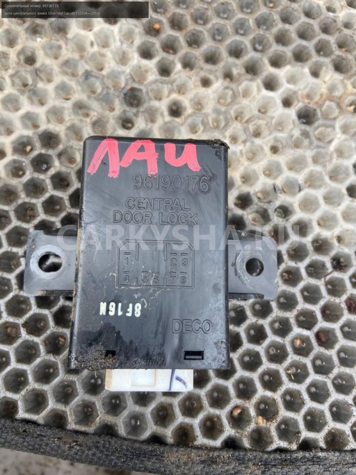 Chevrolet Lacetti, реле центрального замка.\nАртикул: 7171\n\nОриг. номер: 96190176\nПроизводитель: GENERAL MOTORS\nПримечание:Шевроле Лачетти, реле центрального замка, б/у. \n\nМарка: Chevrolet\nМодель: Lacetti I (2004—2013)\nГод выпуска: 2008\nКузов тип: Седан\nДвигатель номер: F16D3\nМодель двигателя: инжектор\nОбъем: 1.6\nТопливо: Бензин\nКоробка: Механика\nЦвет: Черный\nСовместимости: Chevrolet Lacetti I (2004—2013) 1.6 MT (109 л.с.)\nСовместимость: