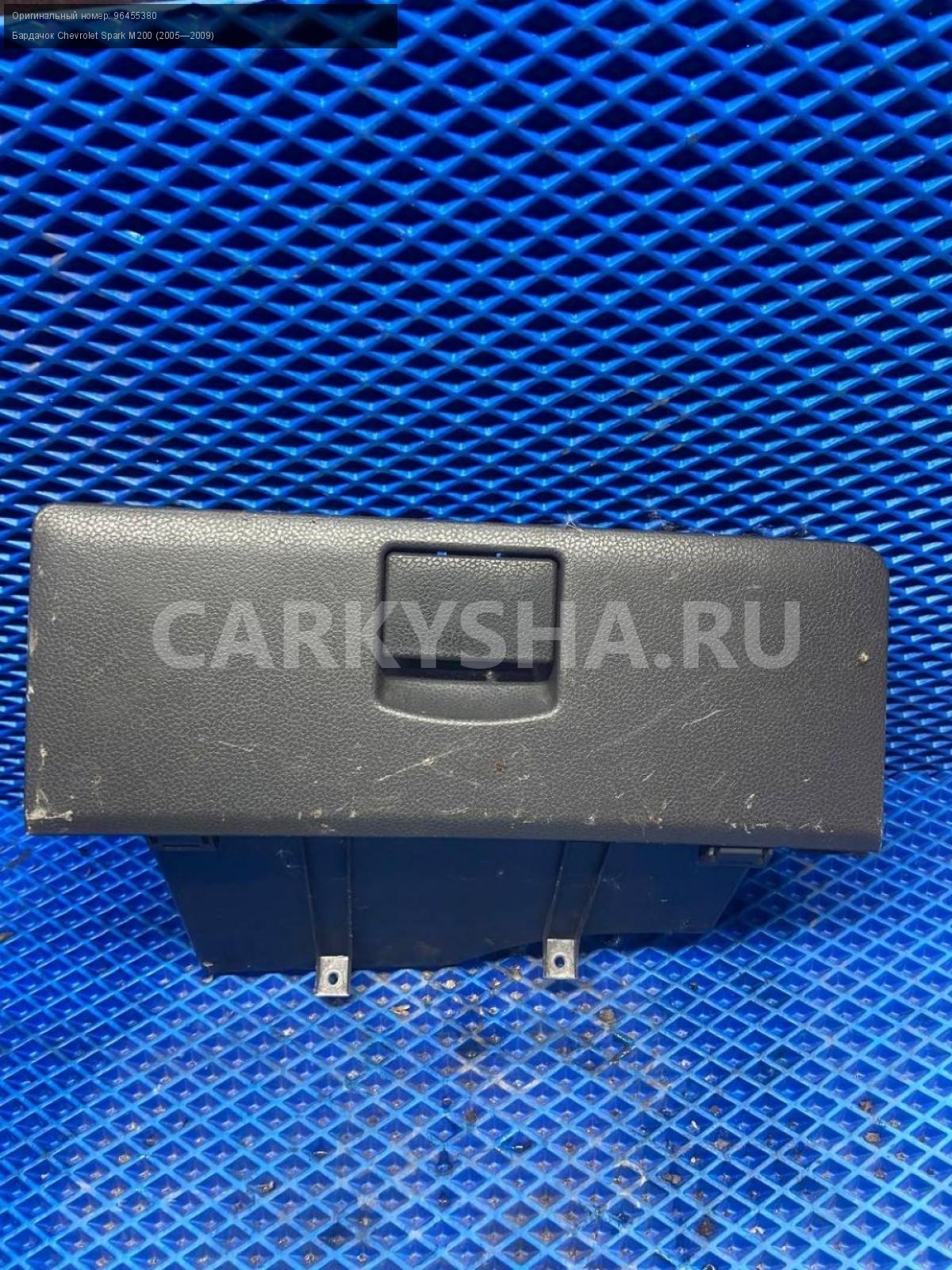 Chevrolet Spark M200, бардачок.\nАртикул: 8024\n\nОриг. номер: 96455380\nПроизводитель: GENERAL MOTORS\nПримечание:Шевроле Спарк М200, бардачок, б/у. \n\nМарка: Chevrolet\nМодель: Spark M200 (2005—2009)\nГод выпуска: 2006\nКузов тип: Хетчбэк\nДвигатель номер: B10D1\nМодель двигателя: инжектор\nОбъем: 1.0\nТопливо: Бензин\nКоробка: Механика\nЦвет: Серебристый\nСовместимости: Chevrolet Spark M200 (2005—2009) 1.0 MT (66 л.с.)\nСовместимость: