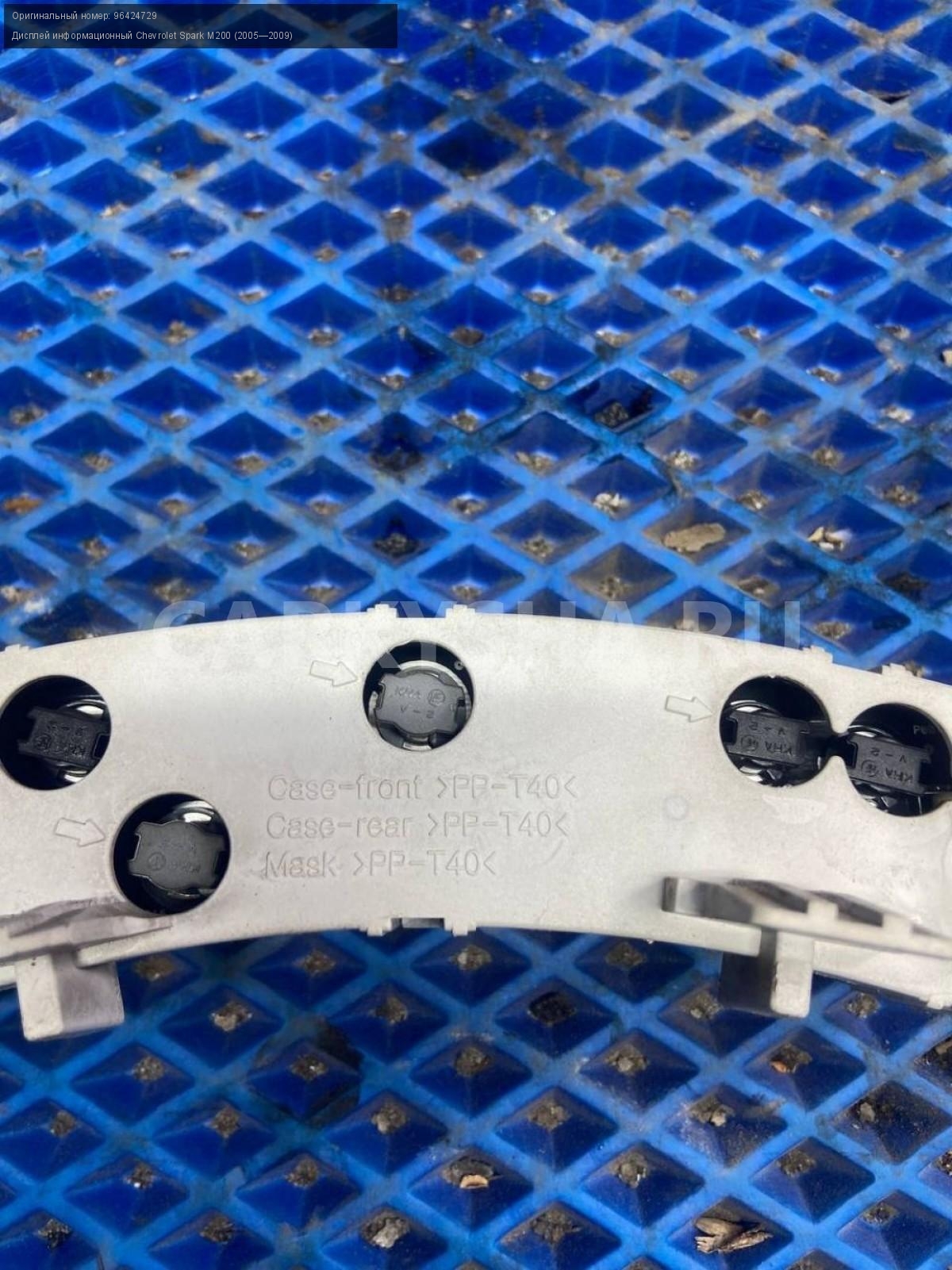 Chevrolet Spark M200, дисплей информационный.\nАртикул: 8932\n\nОриг. номер: 96424729\nПроизводитель: GENERAL MOTORS\nПримечание:Шевроле Спарк М200, дисплей информационный, б/у. \n\nМарка: Chevrolet\nМодель: Spark M200 (2005—2009)\nГод выпуска: 2006\nКузов тип: Хетчбэк\nДвигатель номер: B10D1\nМодель двигателя: инжектор\nОбъем: 1.0\nТопливо: Бензин\nКоробка: Механика\nЦвет: Серебристый\nСовместимости: Chevrolet Spark M200 (2005—2009) 1.0 MT (66 л.с.)\nСовместимость: