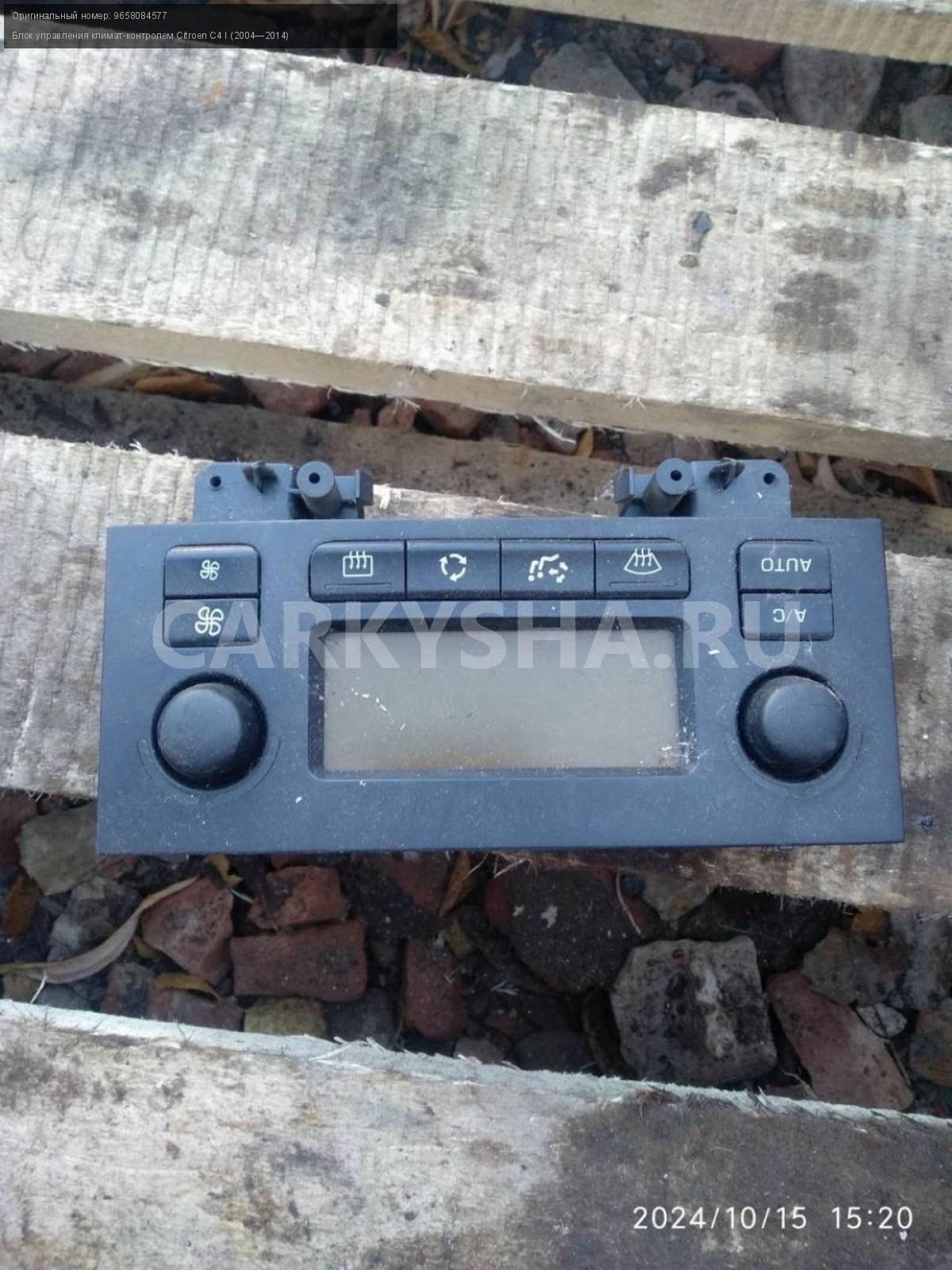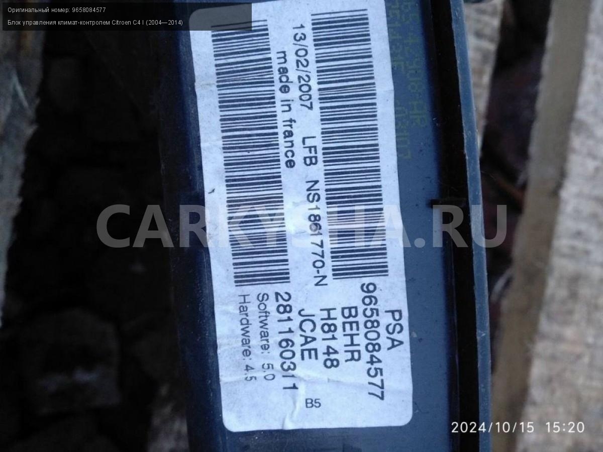 Citroen C4 купе, блок управления климатом.\nАртикул: 6007\n\nОриг. номер: 9658084577\nПроизводитель: Peugeot-Citroen\nПримечание:Ситроен С4 купе, блок управления климатом, б/у. \n\nМарка: Citroen\nМодель: C4 I (2004—2014)\nГод выпуска: 2007\nКузов тип: Купе\nДвигатель номер: TU5JP4\nМодель двигателя: инжектор\nОбъем: 1.6\nТопливо: Бензин\nКоробка: Автомат\nЦвет: Черный\nСовместимости: Citroen C4 I (2004—2014) 1.6 AT (109 л.с.)\nСовместимость: