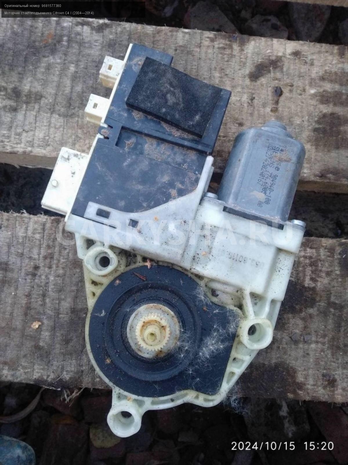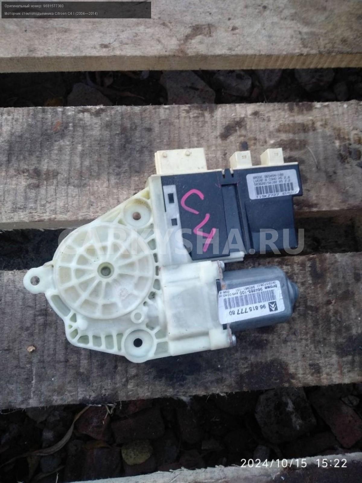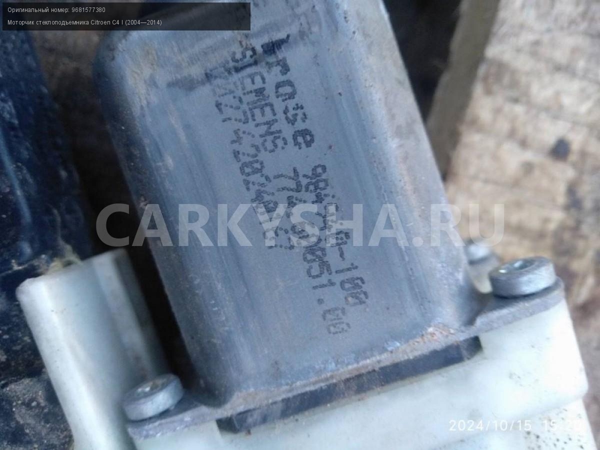 Citroen C4 купе, моторчики стеклоподъемников пара.\nАртикул: 6009\n\nОриг. номер: 9681577380\nПроизводитель: Peugeot-Citroen\nПримечание:Ситроен С4 купе, моторчики стеклоподъемников, цена за пару, б/у. \n\nМарка: Citroen\nМодель: C4 I (2004—2014)\nГод выпуска: 2007\nКузов тип: Купе\nДвигатель номер: TU5JP4\nМодель двигателя: инжектор\nОбъем: 1.6\nТопливо: Бензин\nКоробка: Автомат\nЦвет: Черный\nСовместимости: Citroen C4 I (2004—2014) 1.6 AT (109 л.с.)\nСовместимость: