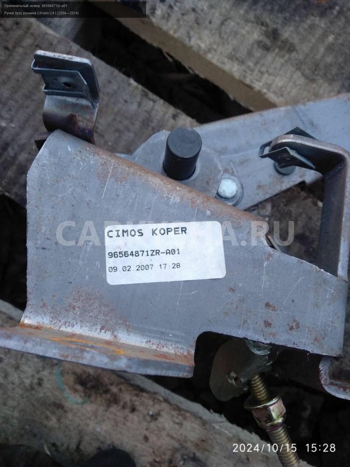 Citroen C4 купе, ручка ручника.\nАртикул: 5972\n\nОриг. номер: 96564871zr-a01\nПроизводитель: Peugeot-Citroen\nПримечание:Ситроен С4 купе, ручка ручника, б/у. \n\nМарка: Citroen\nМодель: C4 I (2004—2014)\nГод выпуска: 2007\nКузов тип: Купе\nДвигатель номер: TU5JP4\nМодель двигателя: инжектор\nОбъем: 1.6\nТопливо: Бензин\nКоробка: Автомат\nЦвет: Черный\nСовместимости: Citroen C4 I (2004—2014) 1.6 AT (109 л.с.)\nСовместимость: