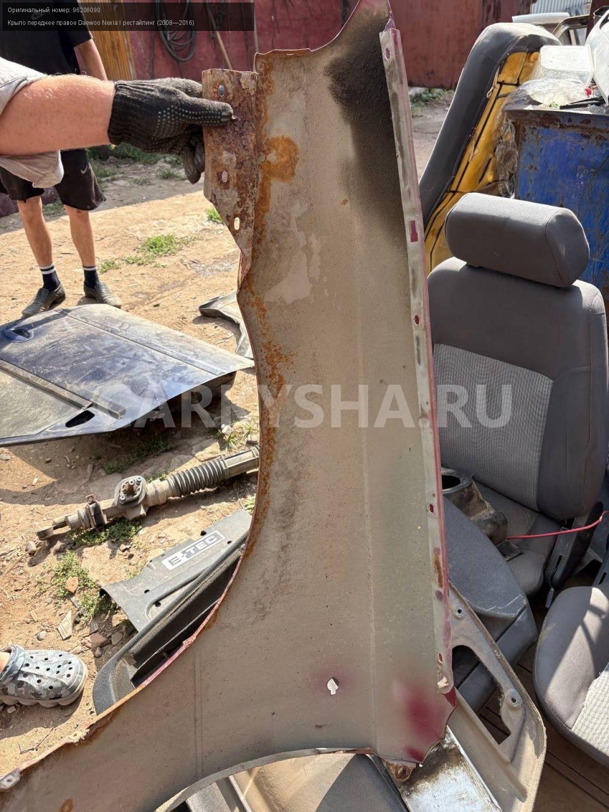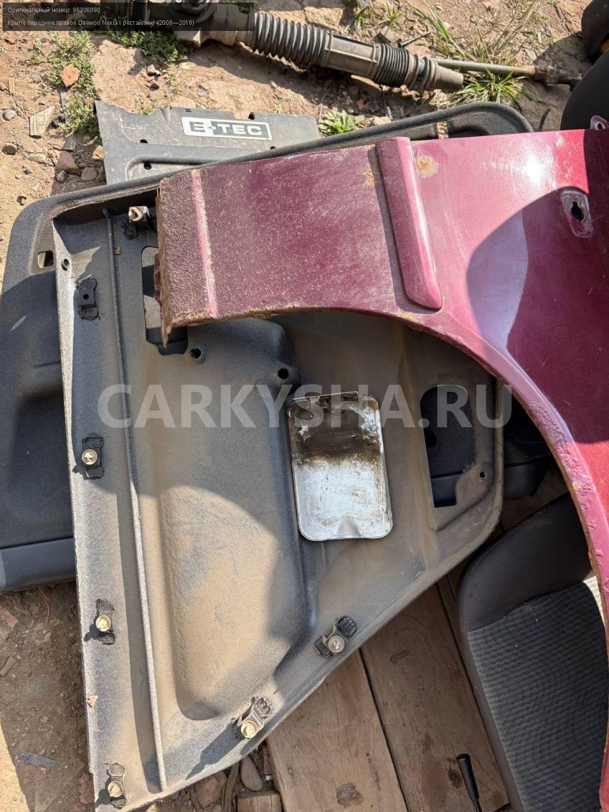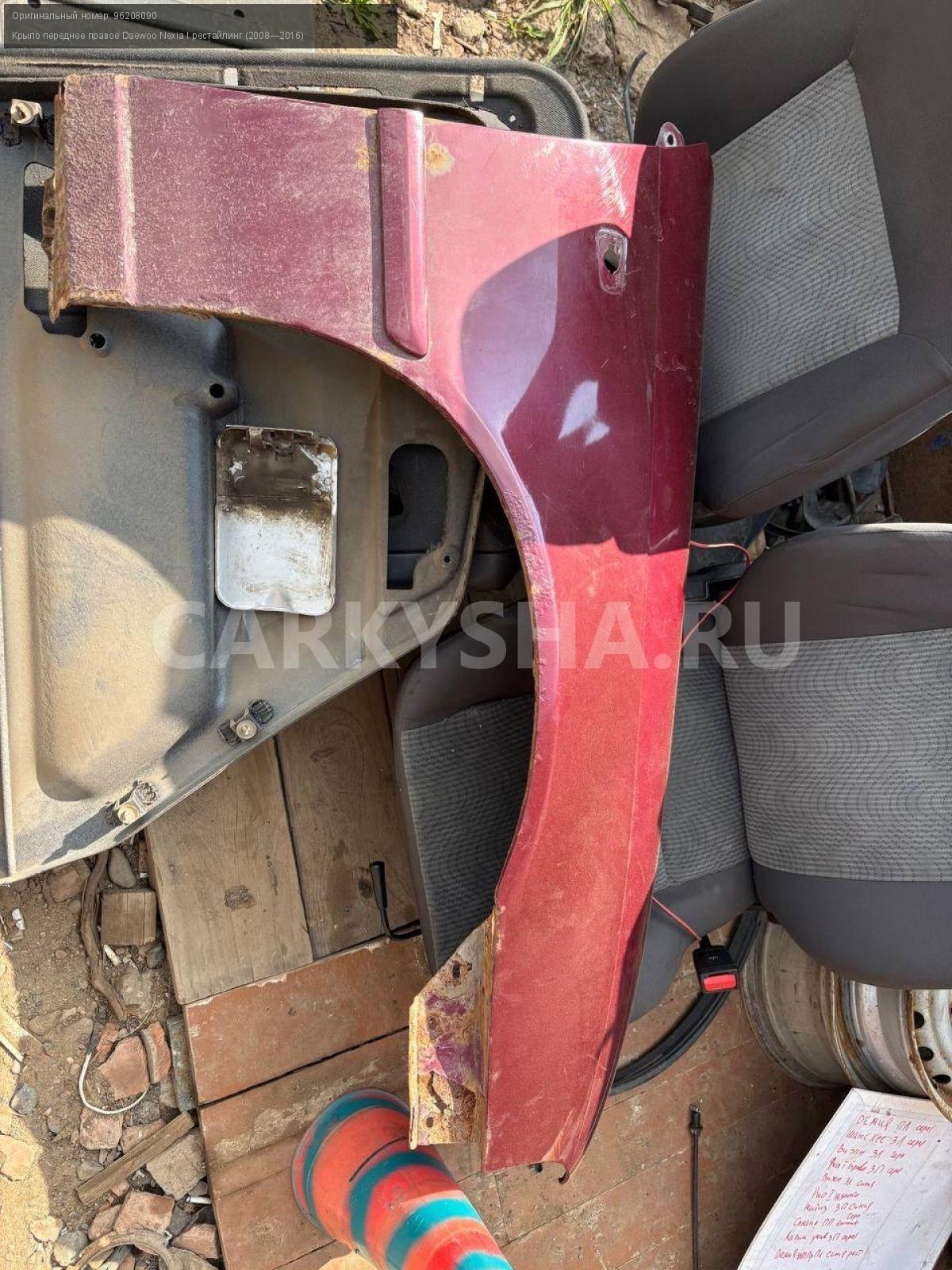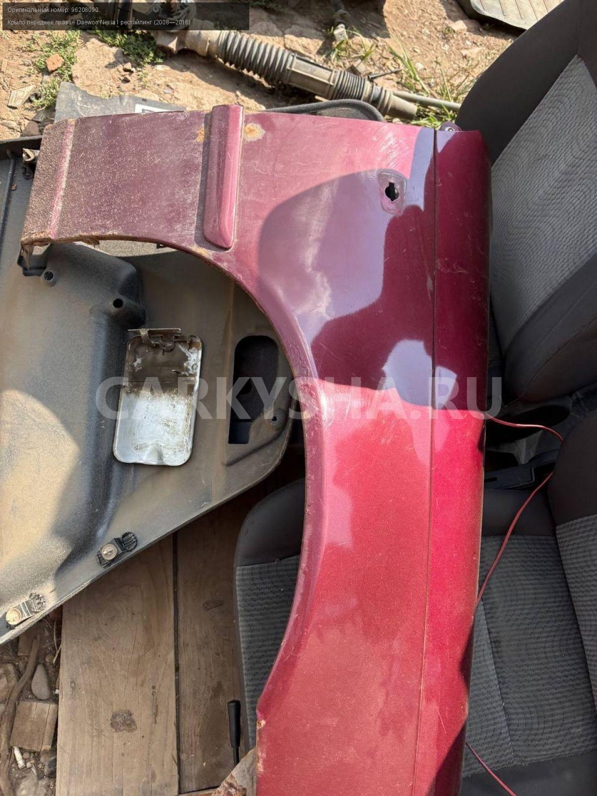 Daewoo Nexia N150, крыло переднее правое.\nАртикул: 8516\n\nОриг. номер: 96208090\nПроизводитель: GENERAL MOTORS\nПримечание:Дэу Нексия N150, крыло переднее правое, б/у. \n\nМарка: Daewoo\nМодель: Nexia I рестайлинг (2008—2016)\nГод выпуска: 2012\nКузов тип: Седан\nДвигатель номер: F16D3\nМодель двигателя: инжектор\nОбъем: 1.6\nТопливо: Бензин\nКоробка: Механика\nЦвет: Спелая вишня\nПраво/Лево: Право\nПеред/Зад: Перед\nСовместимости: Daewoo Nexia I рестайлинг (2008—2016) 1.6 MT (109 л.с.)\nСовместимость: