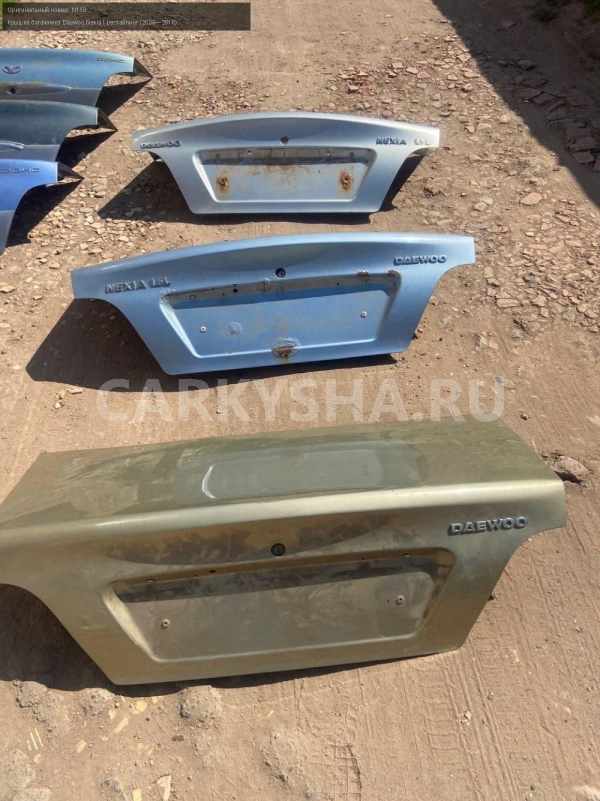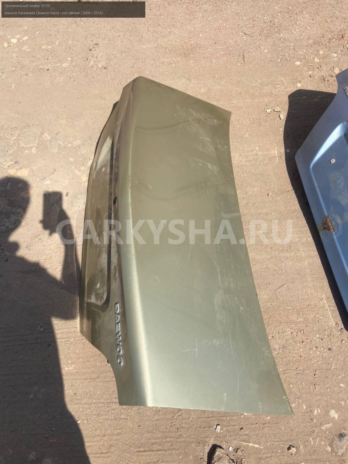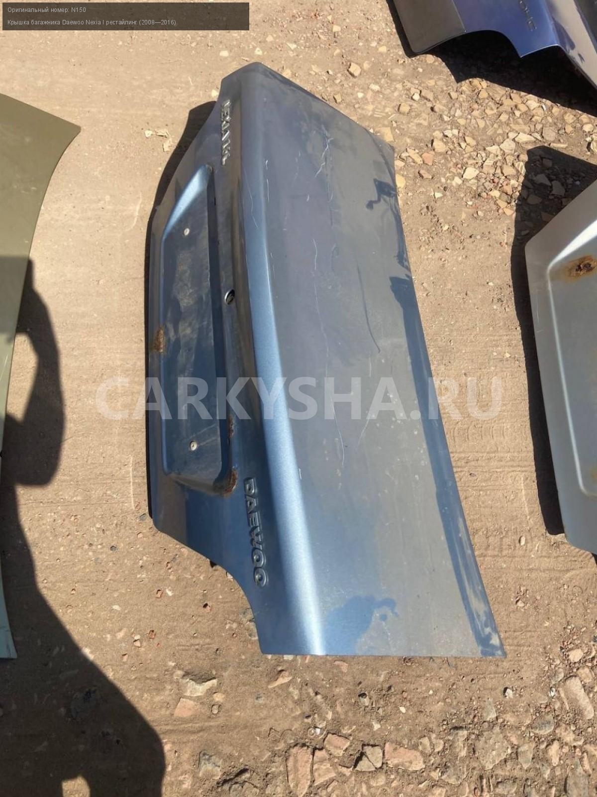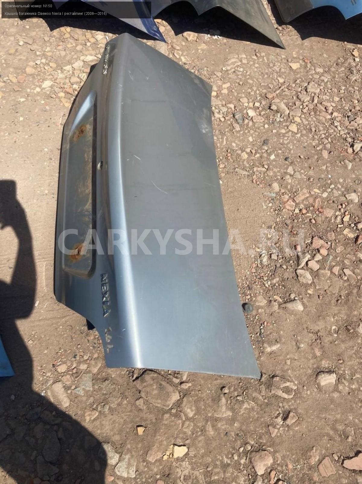 Daewoo Nexia N150, крышка багажника.\nАртикул: 8212\n\nОриг. номер: N150\nПроизводитель: DAEWOO\nПримечание:Дэу Нексия N150, крышка багажника, цена за штуку , б/у. \n\nМарка: Daewoo\nМодель: Nexia I рестайлинг (2008—2016)\nГод выпуска: 2012\nКузов тип: Седан\nДвигатель номер: F16D3\nМодель двигателя: инжектор\nОбъем: 1.6\nТопливо: Бензин\nКоробка: Механика\nЦвет: Спелая вишня\nСовместимости: Daewoo Nexia I рестайлинг (2008—2016) 1.6 MT (109 л.с.)\nСовместимость:
