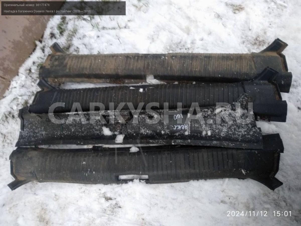 Daewoo Nexia, замковая панель багажника.\nАртикул: 6269\n\nОриг. номер: 96177476\nПроизводитель: GENERAL MOTORS\nПримечание:Дэу Нексия, замковая панель багажника (накладка багажника), б/у, цена за штуку. \n\nМарка: Daewoo\nМодель: Nexia I рестайлинг (2008—2016)\nГод выпуска: 2012\nКузов тип: Седан\nДвигатель номер: F16D3\nМодель двигателя: инжектор\nОбъем: 1.6\nТопливо: Бензин\nКоробка: Механика\nСовместимости: Daewoo Nexia I рестайлинг (2008—2016) 1.6 MT (109 л.с.)\nСовместимость: