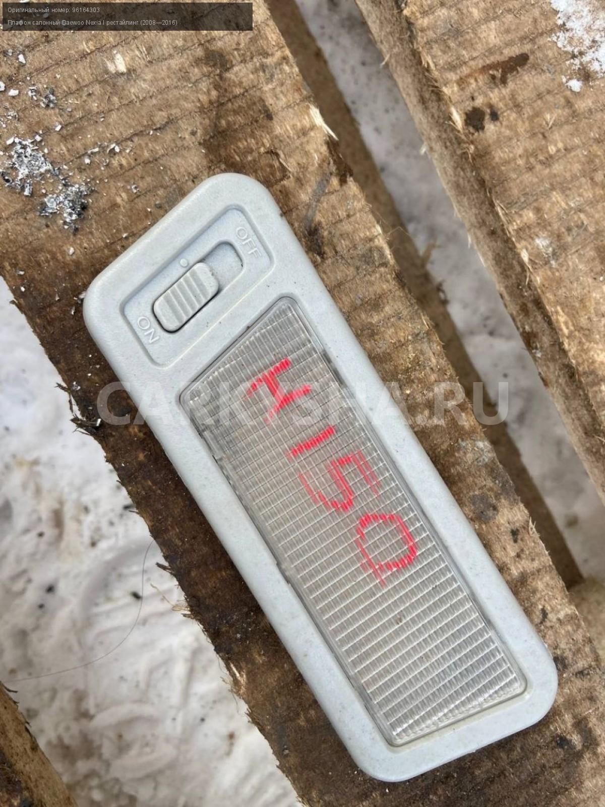 Daewoo Nexia N150, плафон салонный.\nАртикул: 6870\n\nОриг. номер: 96164303\nПроизводитель: GENERAL MOTORS\nПримечание:Дэу Нексия N150, плафон освещения салона, б/у. \n\nМарка: Daewoo\nМодель: Nexia I рестайлинг (2008—2016)\nКузов тип: Седан\nДвигатель номер: A15SMS\nМодель двигателя: инжектор\nОбъем: 1.5\nТопливо: Бензин\nКоробка: Механика\nЦвет: Изолента\nСовместимости: Daewoo Nexia I рестайлинг (2008—2016) 1.5 MT (80 л.с.)\nСовместимость: