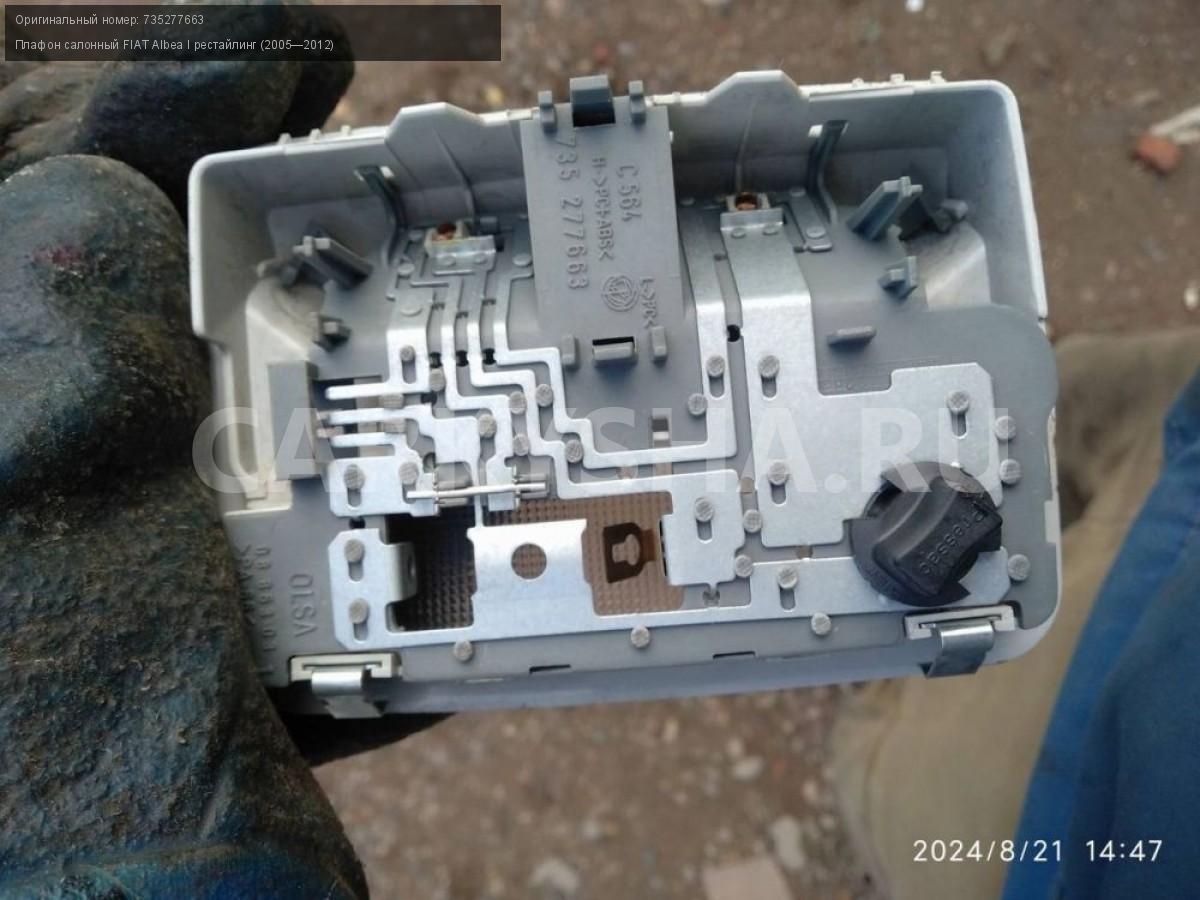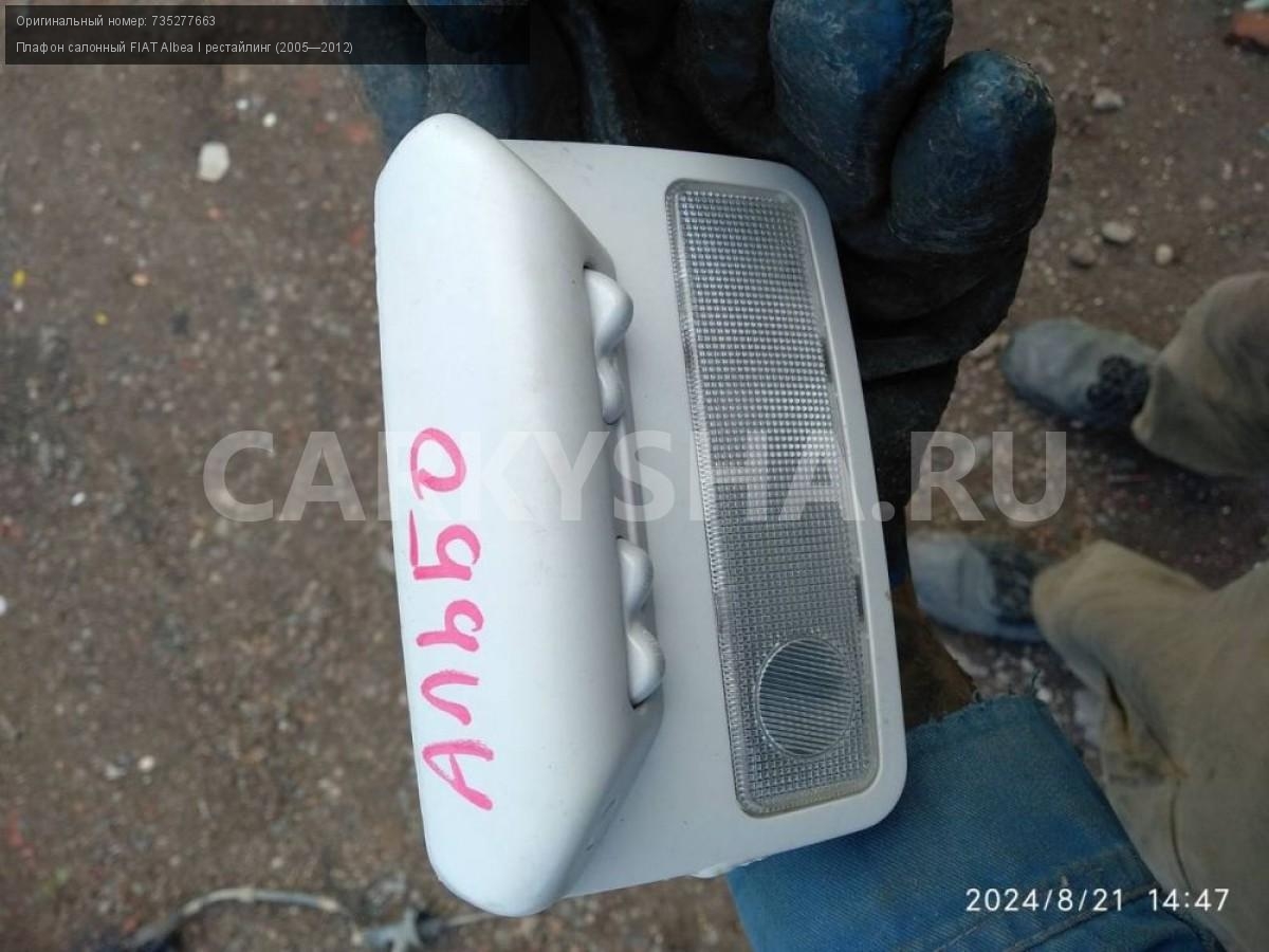 FIAT Albea, плафон освещения салона.\nАртикул: 5538\n\nОриг. номер: 735277663\nПроизводитель: Fiat\nПримечание:Фиат Альбеа, плафон освещения салона, б/у. \n\nМарка: FIAT\nМодель: Albea I рестайлинг (2005—2012)\nГод выпуска: 2010\nКузов тип: Седан\nМодель двигателя: инжектор\nОбъем: 1.4\nТопливо: Бензин\nКоробка: Механика\nЦвет: Зеленый\nСовместимости: FIAT Albea I рестайлинг (2005—2012) 1.4 MT (77 л.с.)\nСовместимость:
