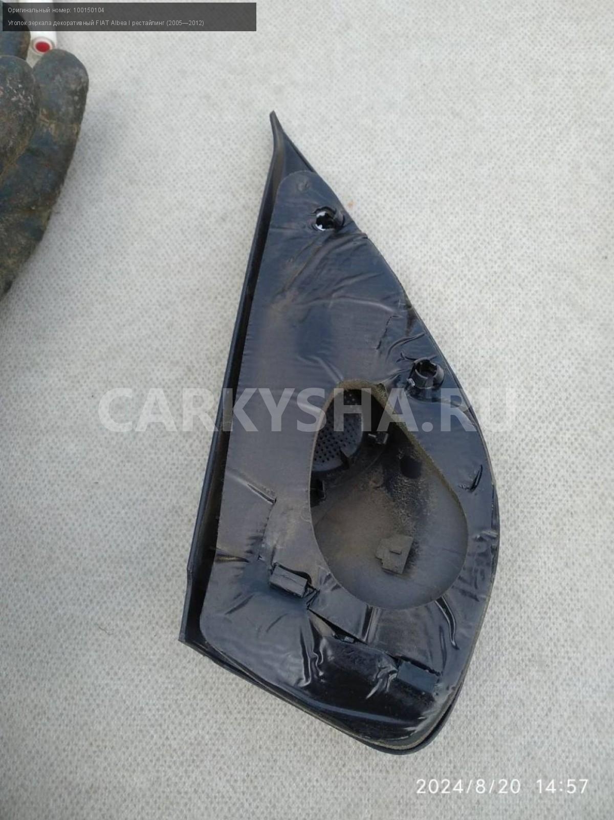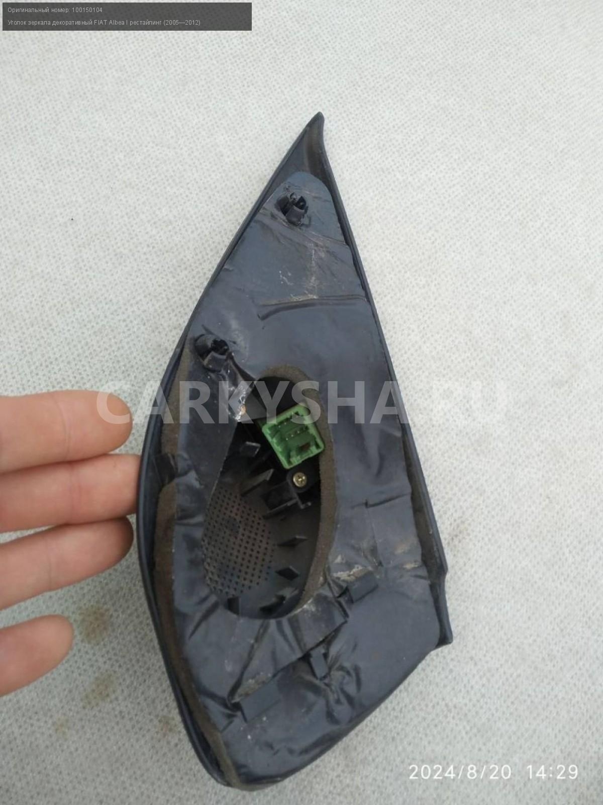 FIAT Albea, уголки зеркал внутренние, пара.\nАртикул: 5525\n\nОриг. номер: 100150104\nПроизводитель: Fiat\nПримечание:Фиат Альбеа, уголки зеркал внутренние, цена за пару, б/у. \n\nМарка: FIAT\nМодель: Albea I рестайлинг (2005—2012)\nГод выпуска: 2010\nКузов тип: Седан\nМодель двигателя: инжектор\nОбъем: 1.4\nТопливо: Бензин\nКоробка: Механика\nЦвет: Зеленый\nПраво/Лево: Право/Лево\nСовместимости: FIAT Albea I рестайлинг (2005—2012) 1.4 MT (77 л.с.)\nСовместимость: