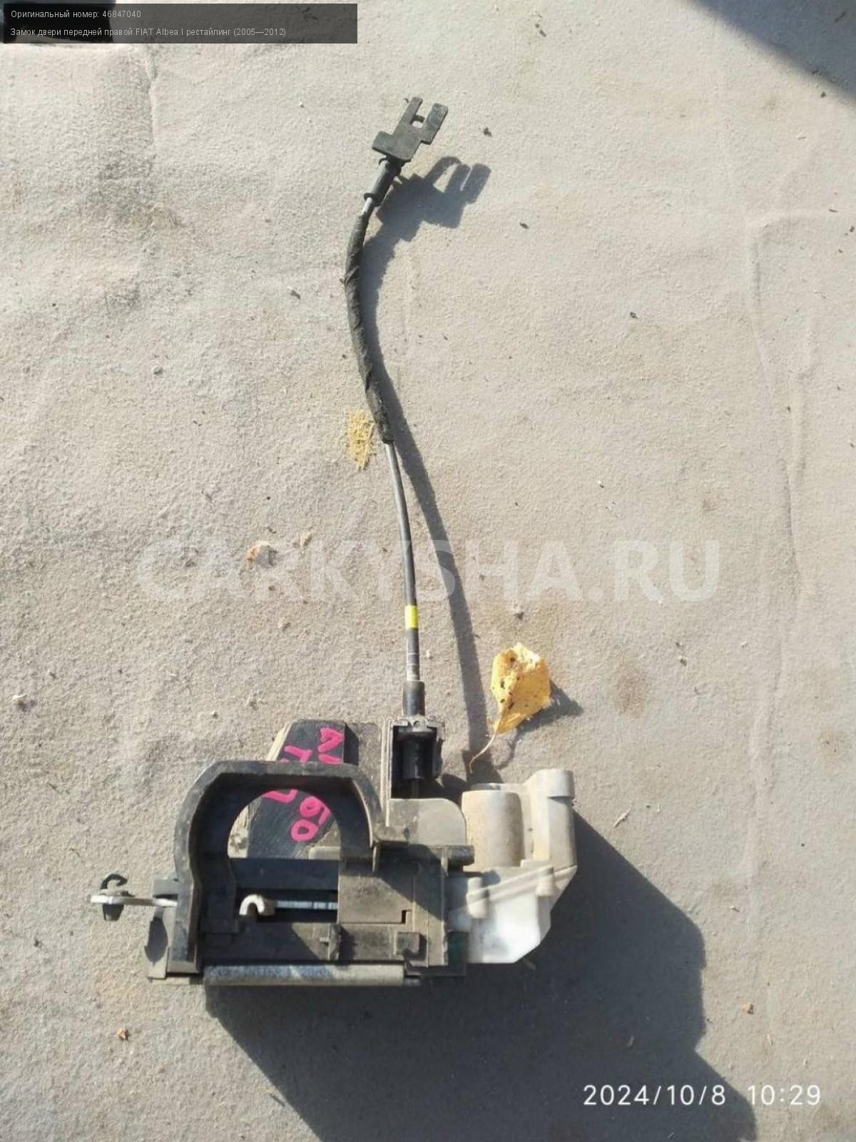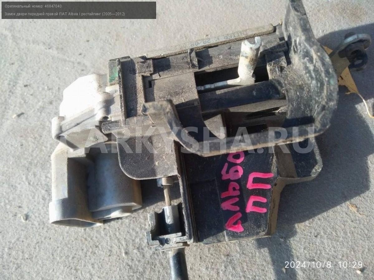 FIAT Albea, Замок двери передней правой.\nАртикул: 5913\n\nОриг. номер: 46847040\nПроизводитель: Fiat\nПримечание:Фиат Альбеа, Замок двери передней правой, б/у. \n\nМарка: FIAT\nМодель: Albea I рестайлинг (2005—2012)\nГод выпуска: 2010\nКузов тип: Седан\nМодель двигателя: инжектор\nОбъем: 1.4\nТопливо: Бензин\nКоробка: Механика\nЦвет: Зеленый\nПраво/Лево: Право\nПеред/Зад: Перед\nСовместимости: FIAT Albea I рестайлинг (2005—2012) 1.4 MT (77 л.с.)\nСовместимость: