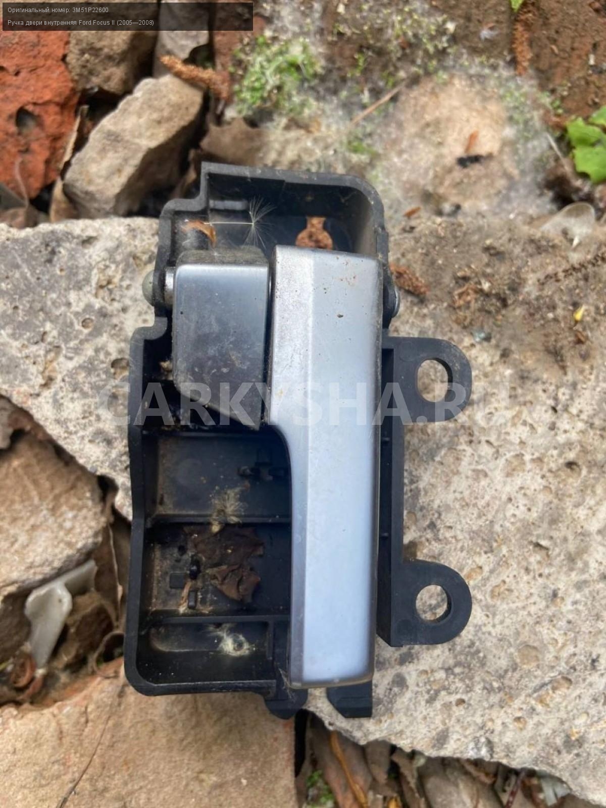 Ford Focus II, ручка двери передней правой.\nАртикул: 5079\n\nОриг. номер: 3М51Р22600\nПроизводитель: FORD\nПримечание:Форд Фокус 2, ручка двери передней, б/у. \n\nМарка: Ford\nМодель: Focus II (2005—2008)\nГод выпуска: 2007\nКузов тип: Купе\nДвигатель номер: QQDB\nМодель двигателя: инжектор\nОбъем: 1.8\nТопливо: Бензин\nКоробка: Механика\nЦвет: Серебристый\nПраво/Лево: Право\nПеред/Зад: Перед\nСовместимости: Ford Focus II (2005—2008) 1.8 MT (125 л.с.)\nСовместимость: