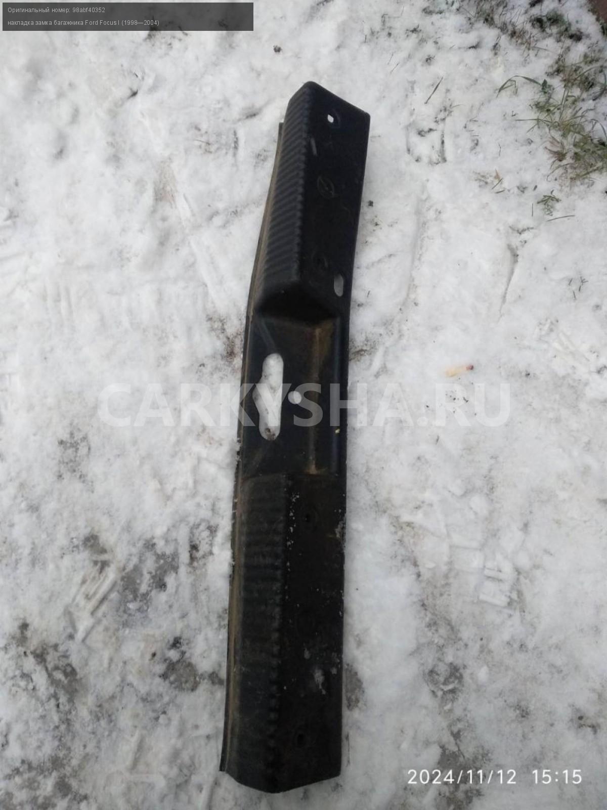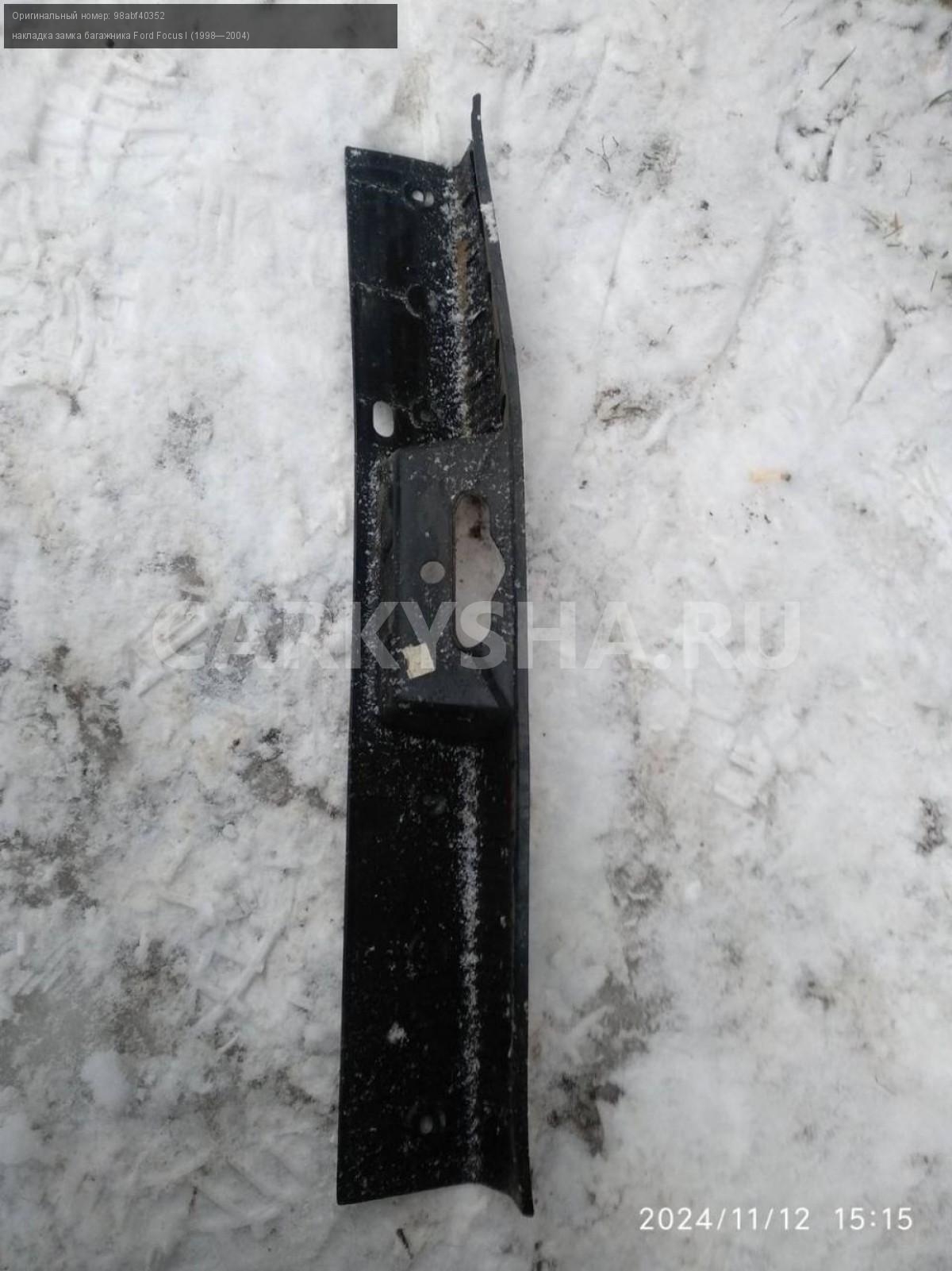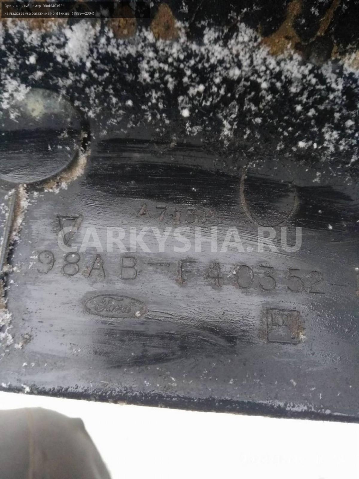 Ford Focus I седан, накладка замка багажника.\nАртикул: 6304\n\nОриг. номер: 98abf40352\nПроизводитель: FORD\nПримечание:Форд Фокус 1, седан, накладка замка багажника, б/у. \n\nМарка: Ford\nМодель: Focus I (1998—2004)\nСовместимости: Ford Focus I (1998—2004)\nСовместимость: