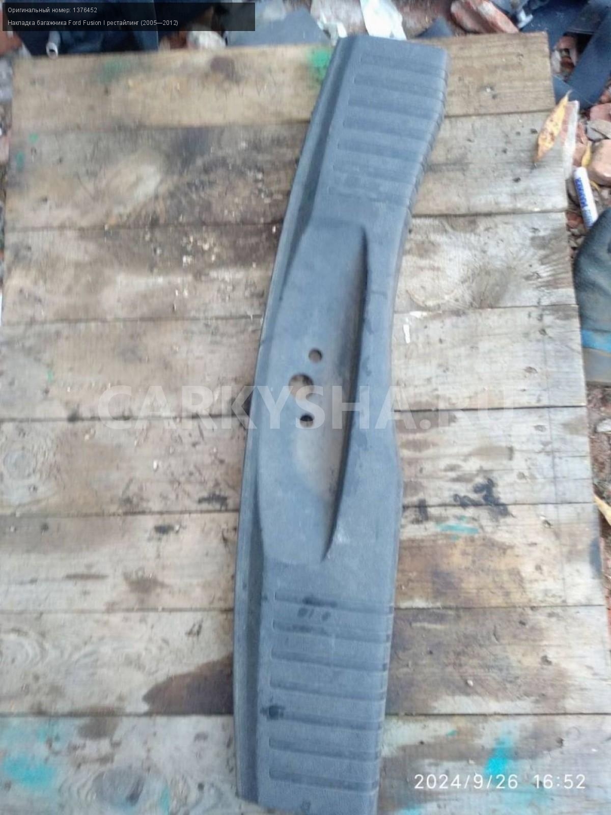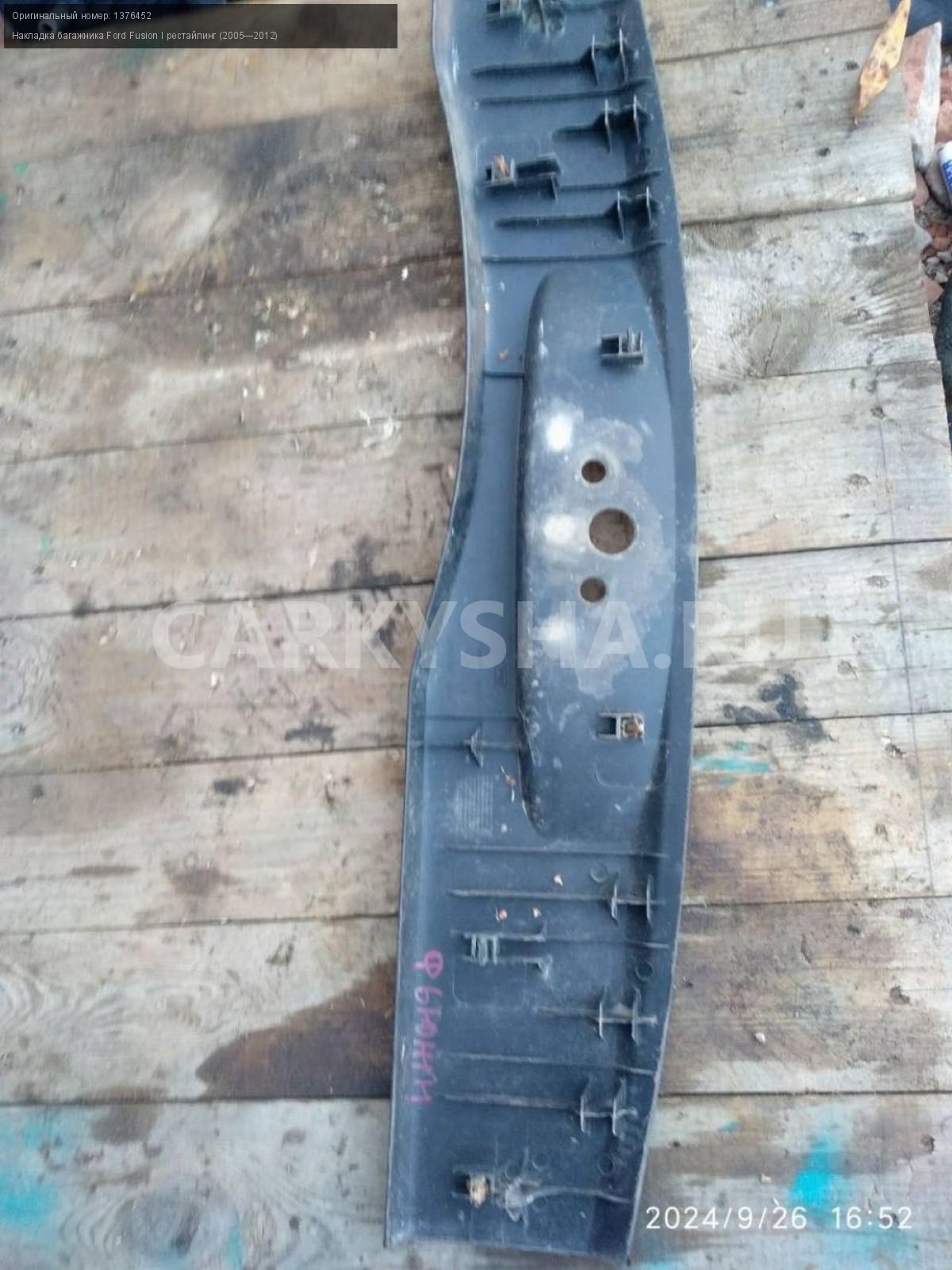 Ford Fusion, Накладка замка багажника.\nАртикул: 5811\n\nОриг. номер: 1376452\nПроизводитель: FORD\nПримечание:Форд Фьюжн, Накладка замка багажника, б/у. \n\nМарка: Ford\nМодель: Fusion I рестайлинг (2005—2012)\nГод выпуска: 2008\nКузов тип: Хетчбэк\nДвигатель номер: FYJA\nМодель двигателя: инжектор\nОбъем: 1.6\nТопливо: Бензин\nКоробка: Механика\nЦвет: Зеленый\nСовместимости: Ford Fusion I рестайлинг (2005—2012) 1.6 MT (101 л.с.)\nСовместимость: