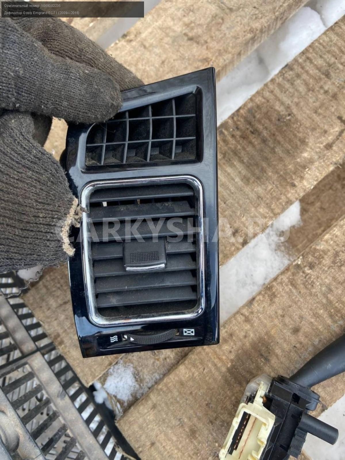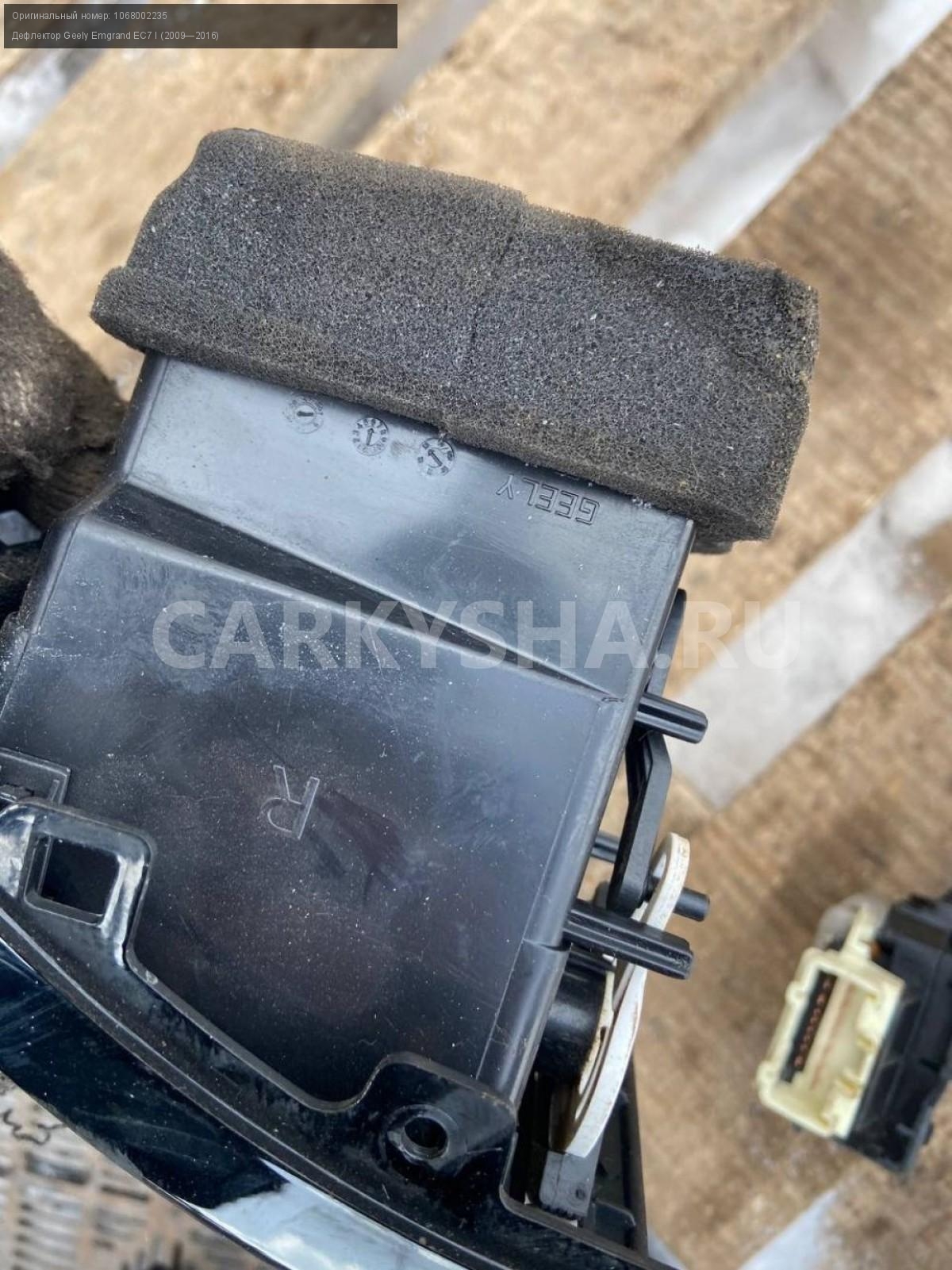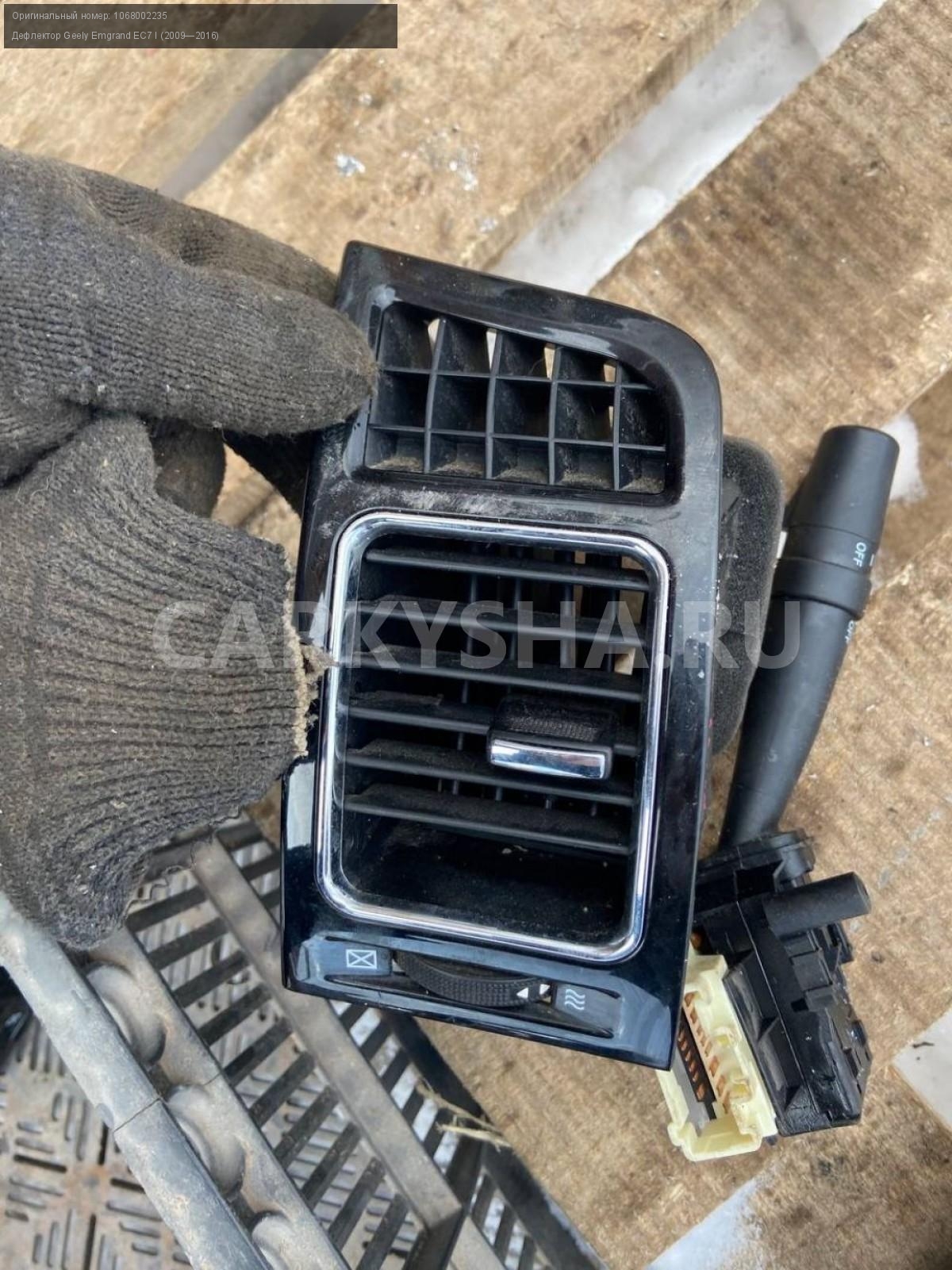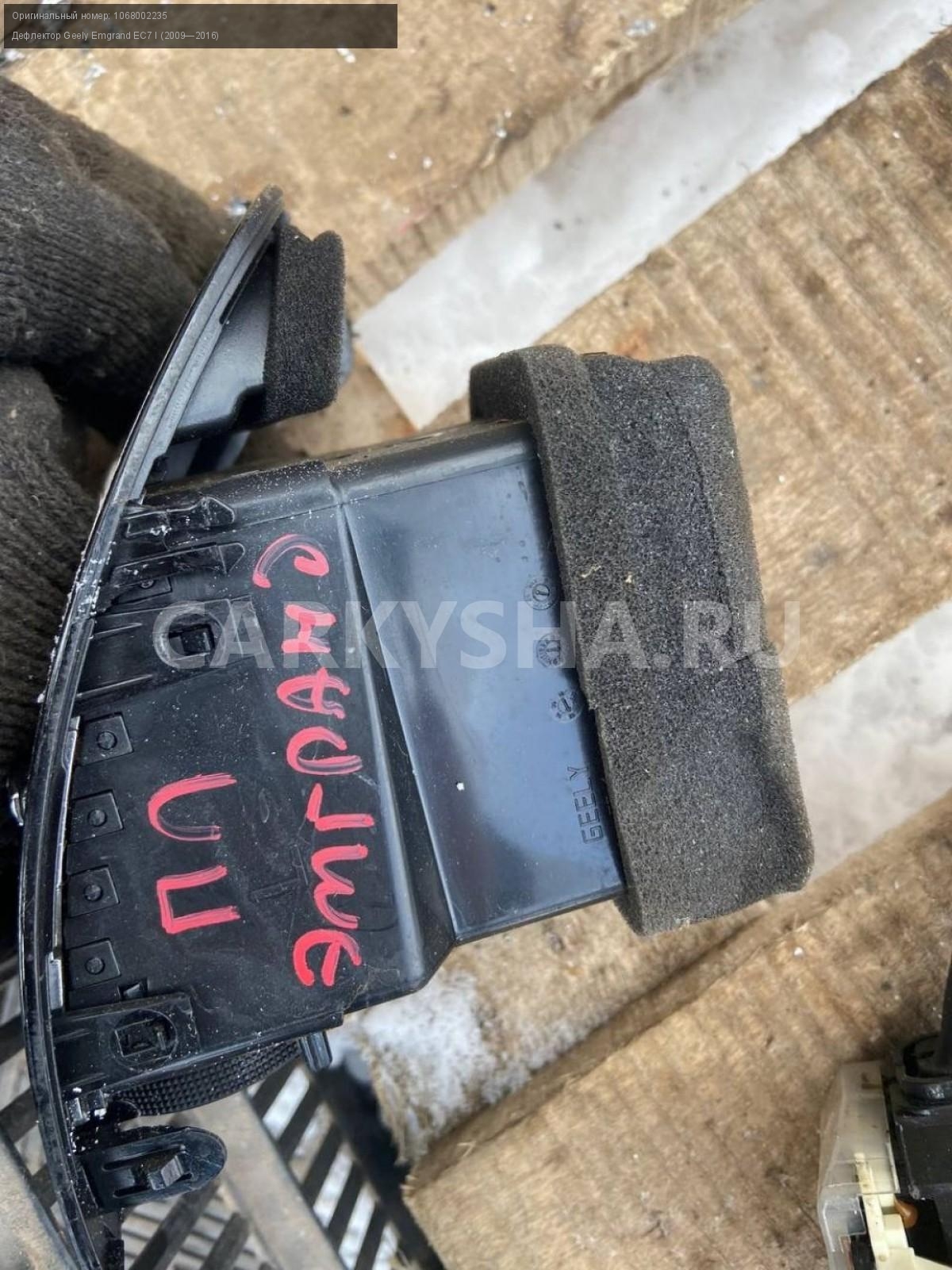 Geely Emgrand EC7, дефлектор в торпедо, пара.\nАртикул: 7027\n\nОриг. номер: 1068002235\nПроизводитель: GEELY\nПримечание:Джили Эмгранд ЕС7, дефлектор в торпедо , воздуховод правый, левый, цена за пару, б/у. \n\nМарка: Geely\nМодель: Emgrand EC7 I (2009—2016)\nГод выпуска: 2013\nКузов тип: Седан\nДвигатель номер: JL4G15D\nМодель двигателя: инжектор\nОбъем: 1.5\nТопливо: Бензин\nКоробка: Механика\nЦвет: Черный\nСовместимости: Geely Emgrand EC7 I (2009—2016) 1.5 MT (98 л.с.)\nСовместимость: