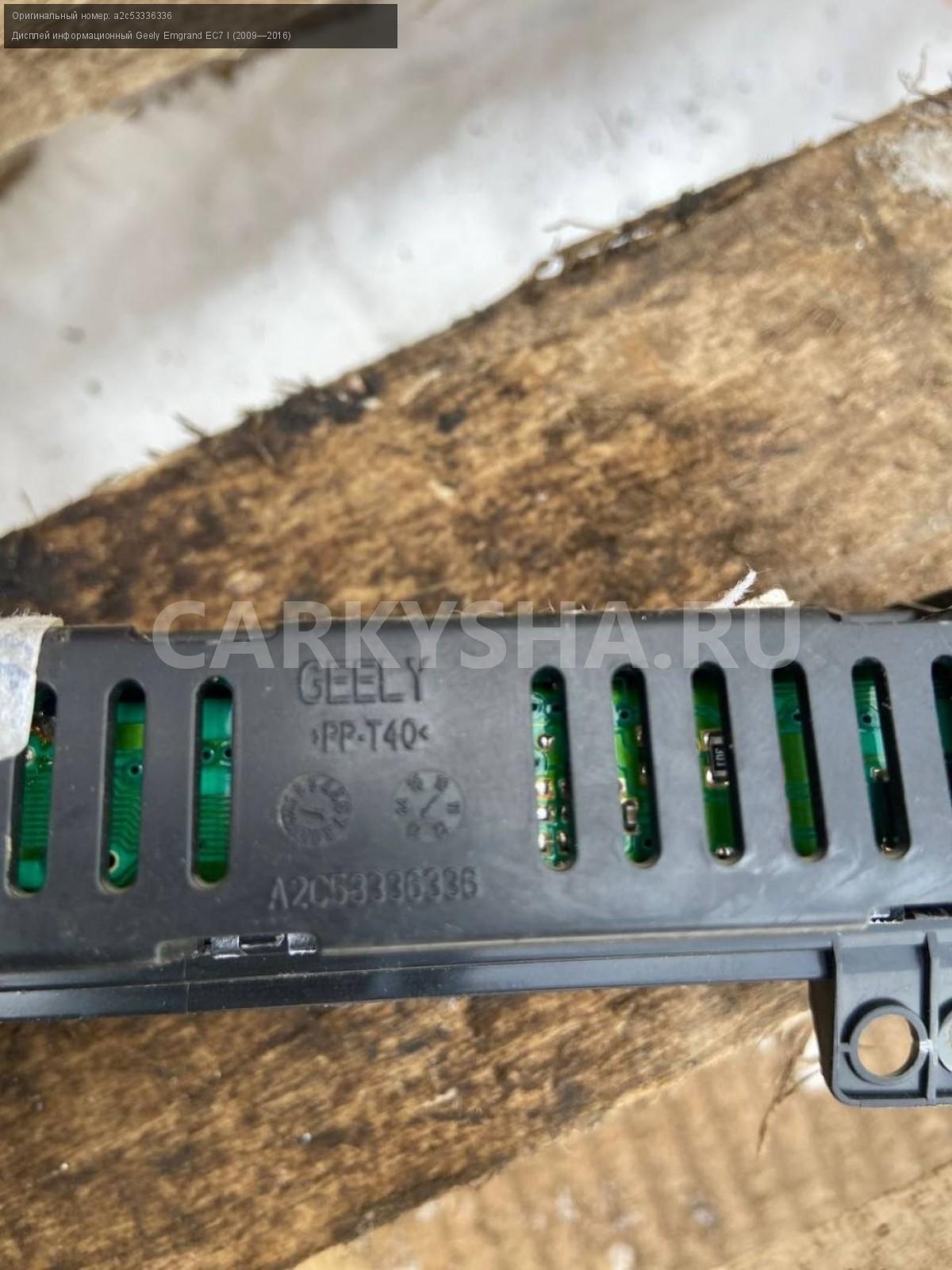 Geely Emgrand EC7, дисплей информационный.\nАртикул: 7029\n\nОриг. номер: a2c53336336\nПроизводитель: GEELY\nПримечание:Джили Эмгранд ЕС7, дисплей информационный, б/у. \n\nМарка: Geely\nМодель: Emgrand EC7 I (2009—2016)\nГод выпуска: 2013\nКузов тип: Седан\nДвигатель номер: JL4G15D\nМодель двигателя: инжектор\nОбъем: 1.5\nТопливо: Бензин\nКоробка: Механика\nЦвет: Черный\nСовместимости: Geely Emgrand EC7 I (2009—2016) 1.5 MT (98 л.с.)\nСовместимость: