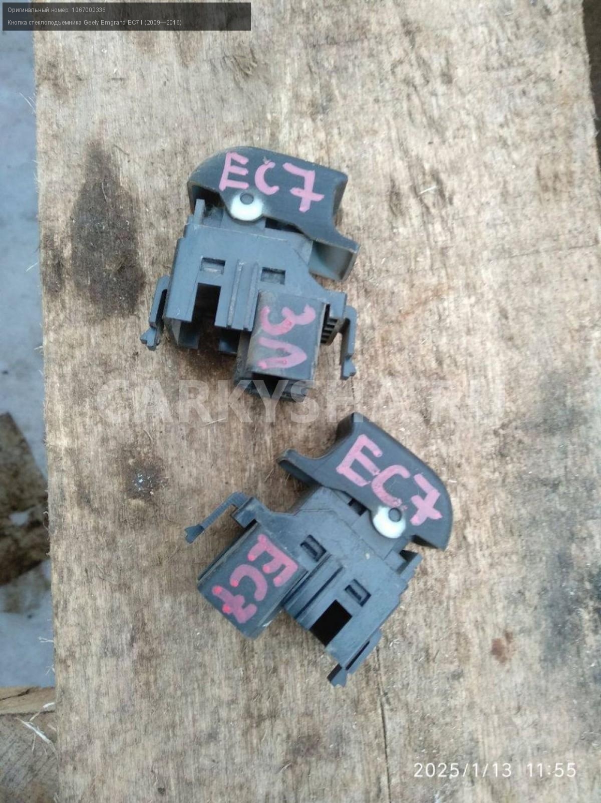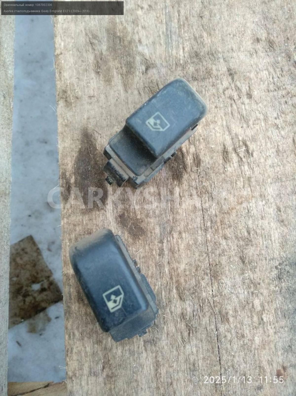 Geely Emgrand EC7, кнопки стеклоподъемников пара.\nАртикул: 6684\n\nОриг. номер: 1067002336\nПроизводитель: GEELY\nПримечание:Джили Эмгранд ЕС7, кнопки стеклоподъемников, цена за пару, б/у. \n\nМарка: Geely\nМодель: Emgrand EC7 I (2009—2016)\nГод выпуска: 2014\nКузов тип: Седан\nДвигатель номер: Jl4G18\nМодель двигателя: инжектор\nОбъем: 1.8\nТопливо: Бензин\nКоробка: Механика\nЦвет: Стальной ( серый)\nПраво/Лево: Право/Лево\nПеред/Зад: Перед\nСовместимости: Geely Emgrand EC7 I (2009—2016) 1.8 MT (126 л.с.)\nСовместимость: