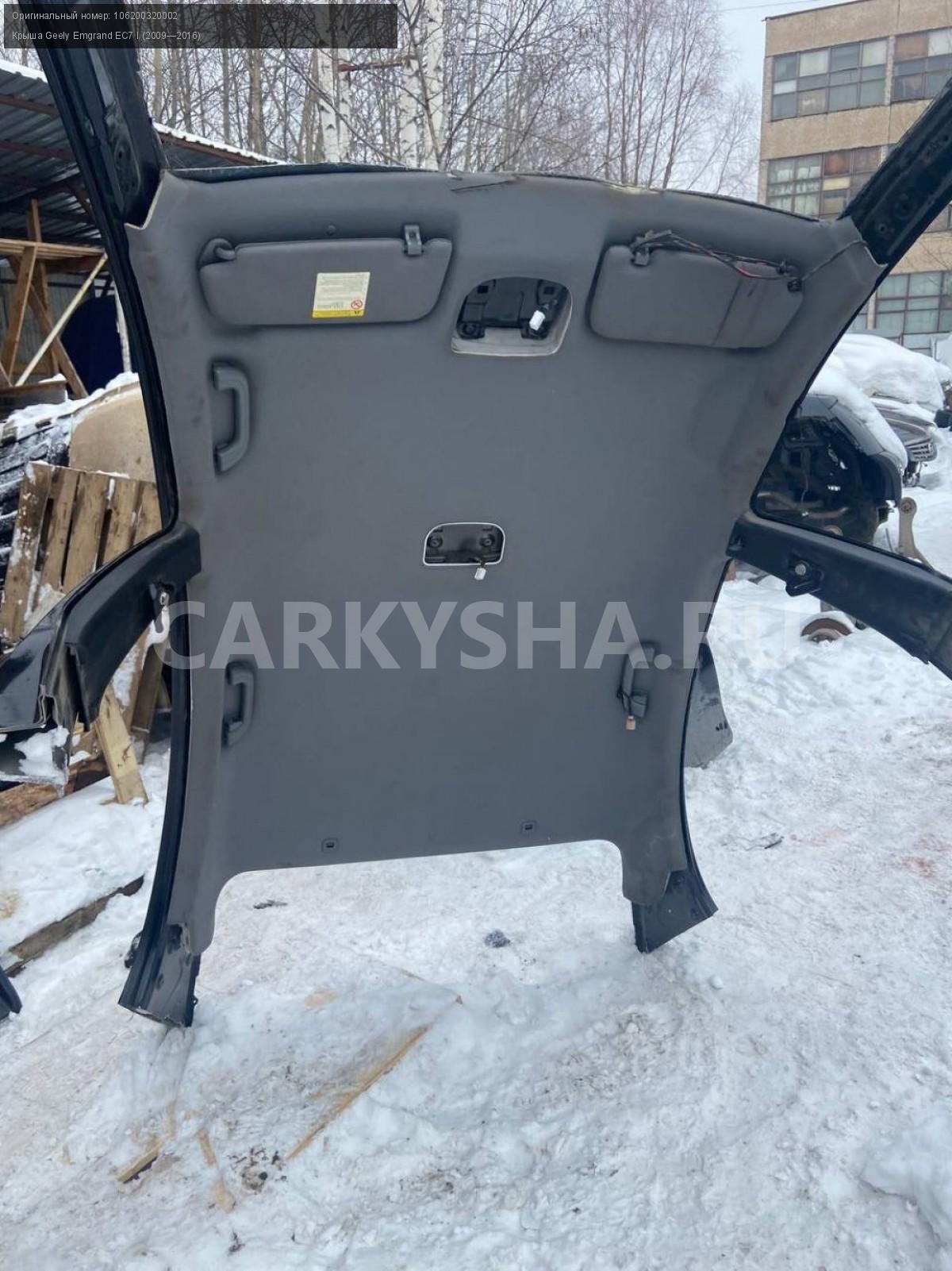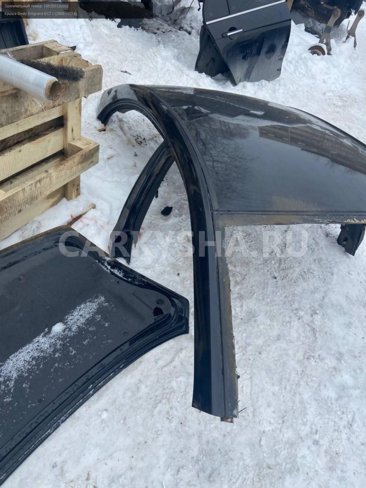 Geely Emgrand EC7, седан, крыша со стойками.\nАртикул: 7108\n\nОриг. номер: 106200320002\nПроизводитель: GEELY\nПримечание:Джили Эмгранд ЕС7, седан, крыша со стойками, б/у. \n\nМарка: Geely\nМодель: Emgrand EC7 I (2009—2016)\nГод выпуска: 2013\nКузов тип: Седан\nДвигатель номер: JL4G15D\nМодель двигателя: инжектор\nОбъем: 1.5\nТопливо: Бензин\nКоробка: Механика\nЦвет: Черный\nСовместимости: Geely Emgrand EC7 I (2009—2016) 1.5 MT (98 л.с.)\nСовместимость: