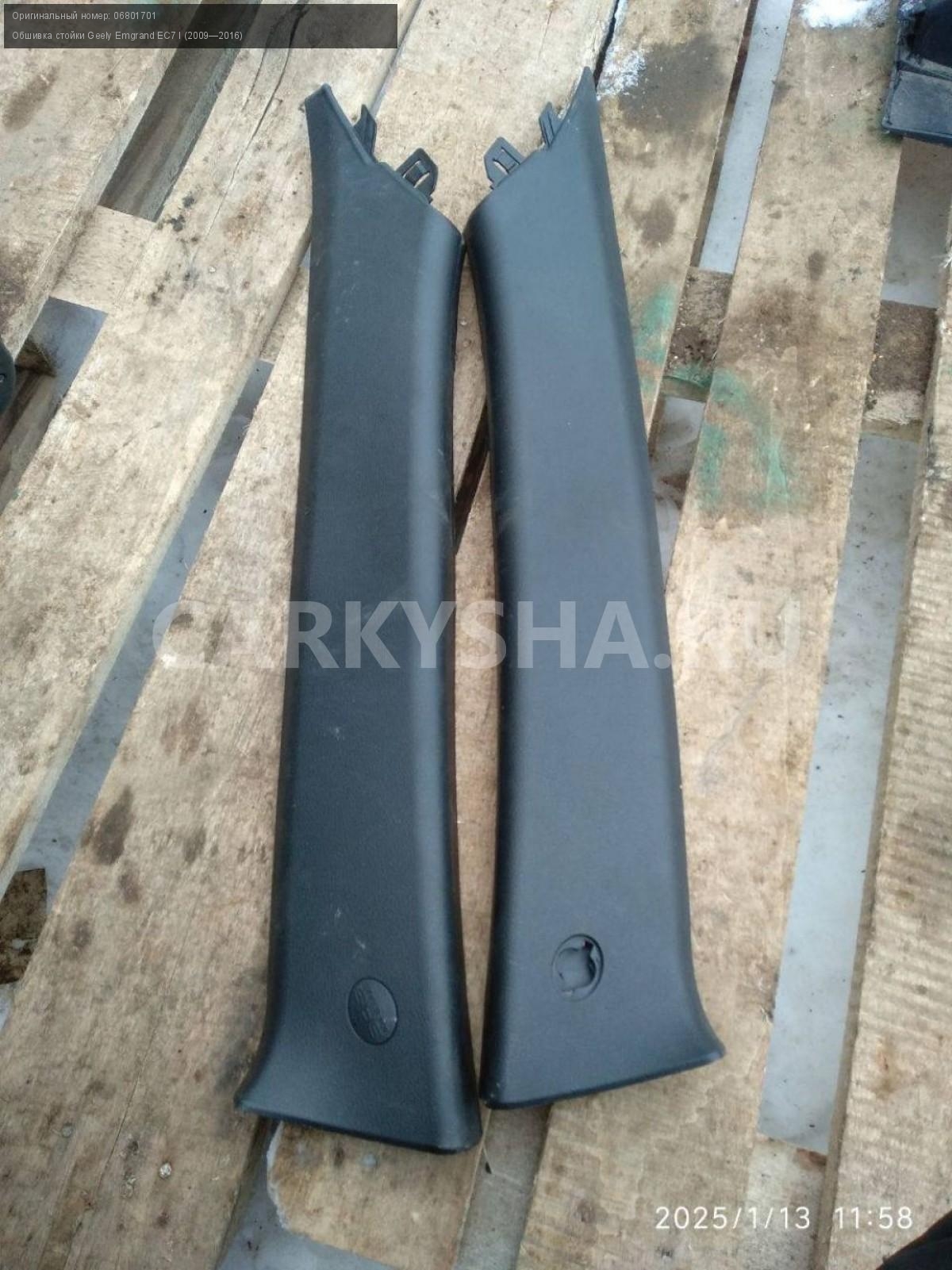 Geely Emgrand EC7 , обшивки лобового стекла пара.\nАртикул: 6689\n\nОриг. номер: 06801701\nПроизводитель: GEELY\nПримечание:Джили Эмгранд ЕС7, обшивки лобового стекла, обшивки стоек передних (лобового стекла), цена за пару, б/у. \n\nМарка: Geely\nМодель: Emgrand EC7 I (2009—2016)\nГод выпуска: 2014\nКузов тип: Седан\nДвигатель номер: Jl4G18\nМодель двигателя: инжектор\nОбъем: 1.8\nТопливо: Бензин\nКоробка: Механика\nЦвет: Стальной ( серый)\nПраво/Лево: Право/Лево\nПеред/Зад: Перед\nСовместимости: Geely Emgrand EC7 I (2009—2016) 1.8 MT (126 л.с.)\nСовместимость: