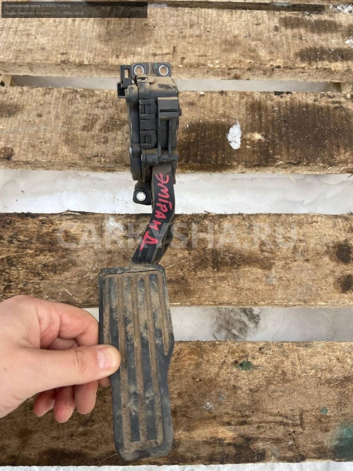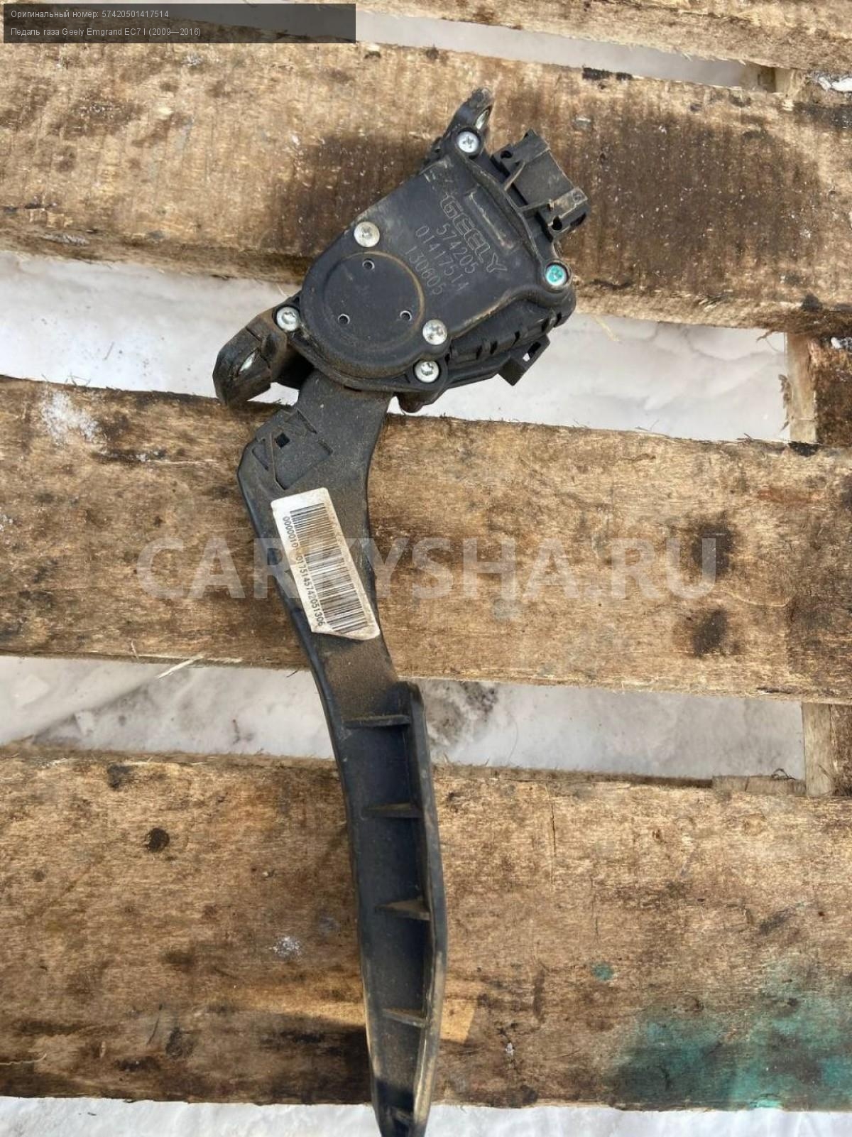 Geely Emgrand EC7 1.5 , Педаль газа.\nАртикул: 7012\n\nОриг. номер: 57420501417514\nПроизводитель: GEELY\nПримечание:Джили Эмгранд ЕС7, 1.5 педаль газа, б/у. \n\nМарка: Geely\nМодель: Emgrand EC7 I (2009—2016)\nГод выпуска: 2013\nКузов тип: Седан\nДвигатель номер: JL4G15D\nМодель двигателя: инжектор\nОбъем: 1.5\nТопливо: Бензин\nКоробка: Механика\nЦвет: Черный\nСовместимости: Geely Emgrand EC7 I (2009—2016) 1.5 MT (98 л.с.)\nСовместимость: