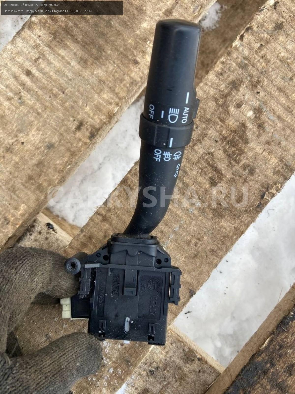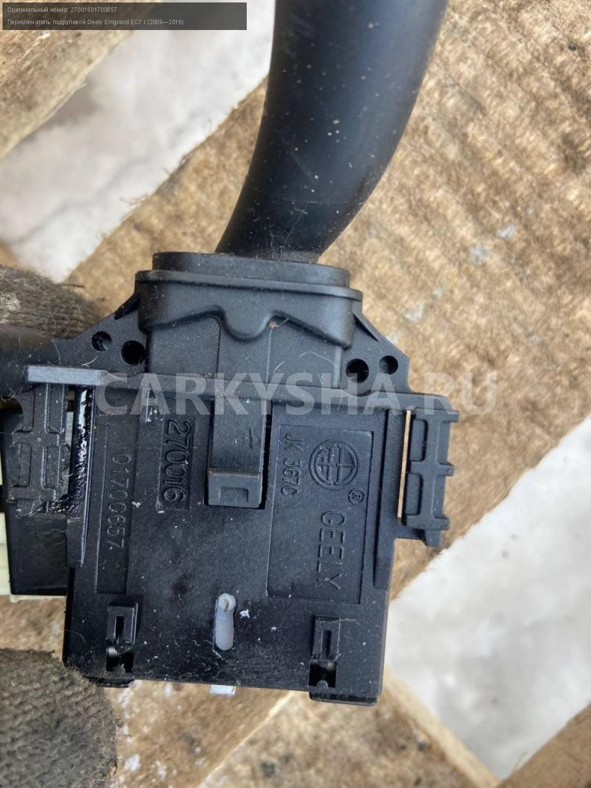 Geely Emgrand EC7, переключатель света, поворотов.\nАртикул: 7020\n\nОриг. номер: 27001601700657\nПроизводитель: GEELY\nПримечание:Джили Эмгранд ЕС7, подрулевой переключатель света, поворотов, б/у. \n\nМарка: Geely\nМодель: Emgrand EC7 I (2009—2016)\nГод выпуска: 2013\nКузов тип: Седан\nДвигатель номер: JL4G15D\nМодель двигателя: инжектор\nОбъем: 1.5\nТопливо: Бензин\nКоробка: Механика\nЦвет: Черный\nСовместимости: Geely Emgrand EC7 I (2009—2016) 1.5 MT (98 л.с.)\nСовместимость: