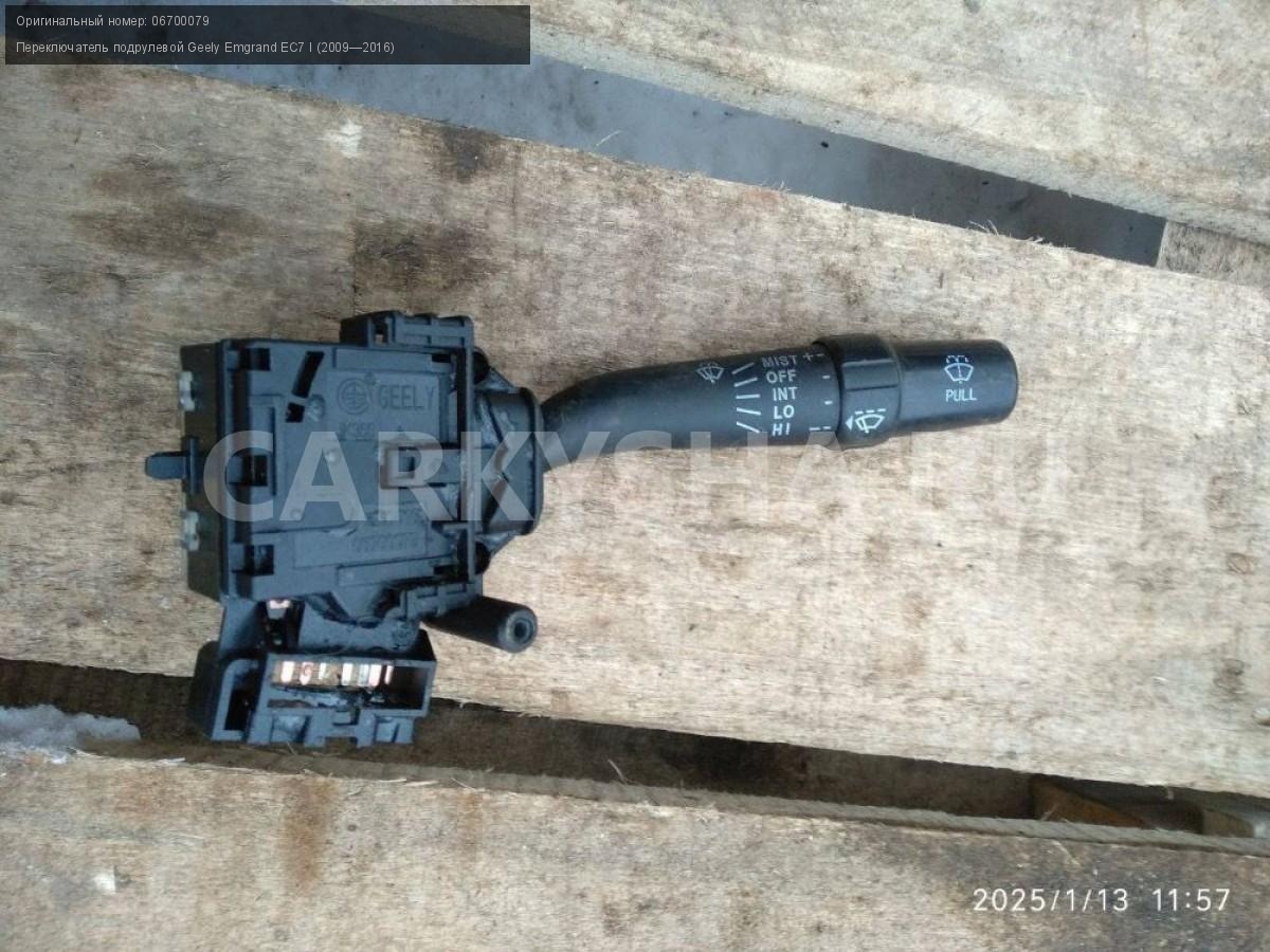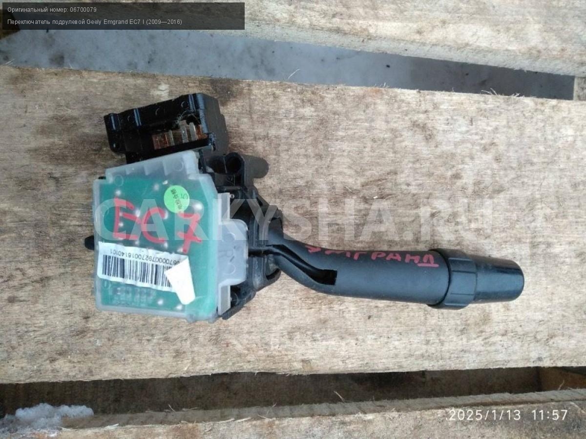 Geely Emgrand EC7, переключатель дворников.\nАртикул: 6677\n\nОриг. номер: 06700079\nПроизводитель: GEELY\nПримечание:Джили Эмгранд ЕС7, переключатель дворников, б/у. \n\nМарка: Geely\nМодель: Emgrand EC7 I (2009—2016)\nГод выпуска: 2014\nКузов тип: Седан\nДвигатель номер: Jl4G18\nМодель двигателя: инжектор\nОбъем: 1.8\nТопливо: Бензин\nКоробка: Механика\nЦвет: Стальной ( серый)\nСовместимости: Geely Emgrand EC7 I (2009—2016) 1.8 MT (126 л.с.)\nСовместимость: