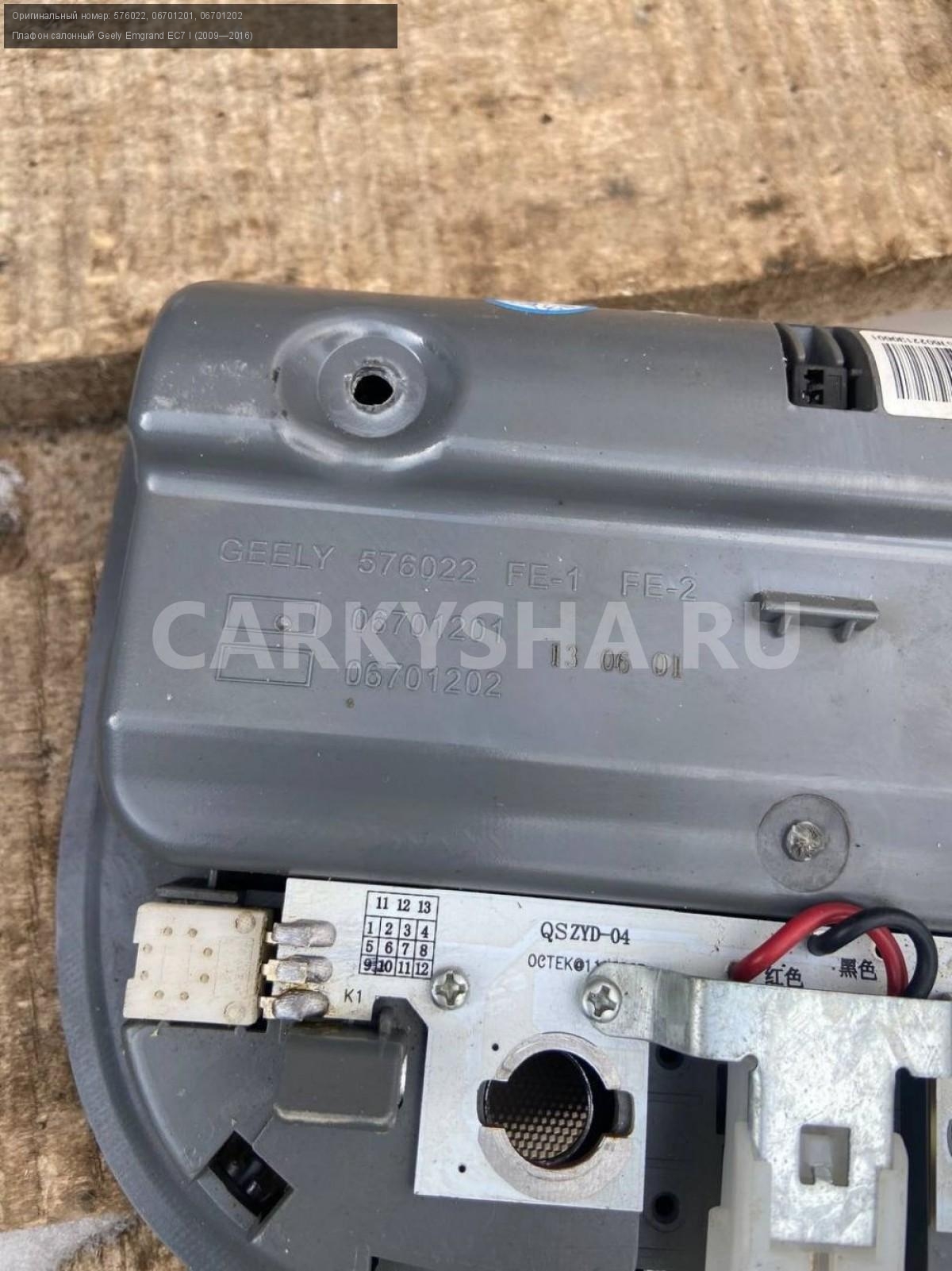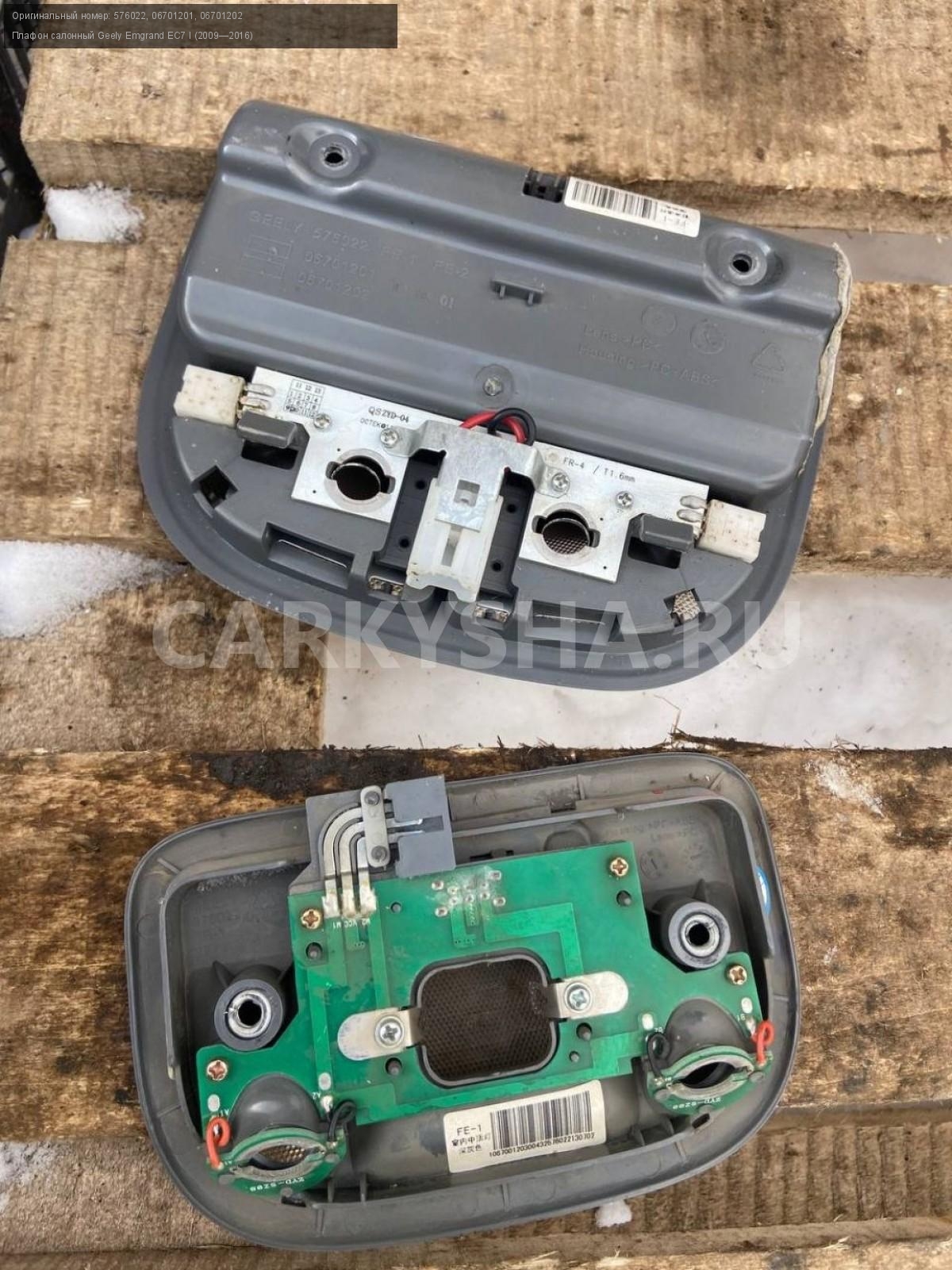 Geely Emgrand EC7, плафон освещения салона, пара.\nАртикул: 7034\n\nОриг. номер: 576022\nНомера замен: 06701201, 06701202\nПроизводитель: GEELY\nПримечание:Джили Эмгранд ЕС7, плафон освещения салона, цена за пару, б/у. \n\nМарка: Geely\nМодель: Emgrand EC7 I (2009—2016)\nГод выпуска: 2013\nКузов тип: Седан\nДвигатель номер: JL4G15D\nМодель двигателя: инжектор\nОбъем: 1.5\nТопливо: Бензин\nКоробка: Механика\nЦвет: Черный\nСовместимости: Geely Emgrand EC7 I (2009—2016) 1.5 MT (98 л.с.)\nСовместимость: