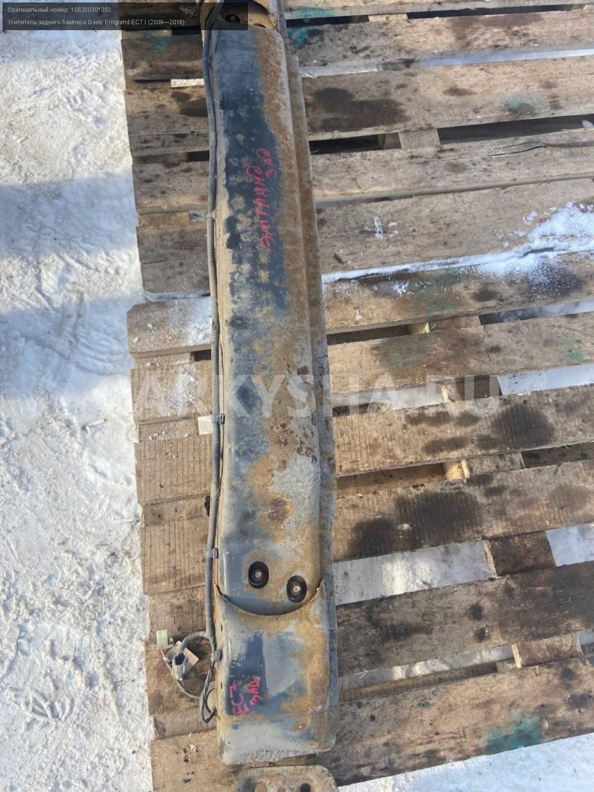 Geely Emgrand EC7, усилитель заднего бампера.\nАртикул: 7076\n\nОриг. номер: 106200301202\nПроизводитель: GEELY\nПримечание:Джили Эмгранд ЕС7, усилитель заднего бампера, б/у. \n\nМарка: Geely\nМодель: Emgrand EC7 I (2009—2016)\nГод выпуска: 2013\nКузов тип: Седан\nДвигатель номер: JL4G15D\nМодель двигателя: инжектор\nОбъем: 1.5\nТопливо: Бензин\nКоробка: Механика\nЦвет: Черный\nПеред/Зад: Зад\nСовместимости: Geely Emgrand EC7 I (2009—2016) 1.5 MT (98 л.с.)\nСовместимость: