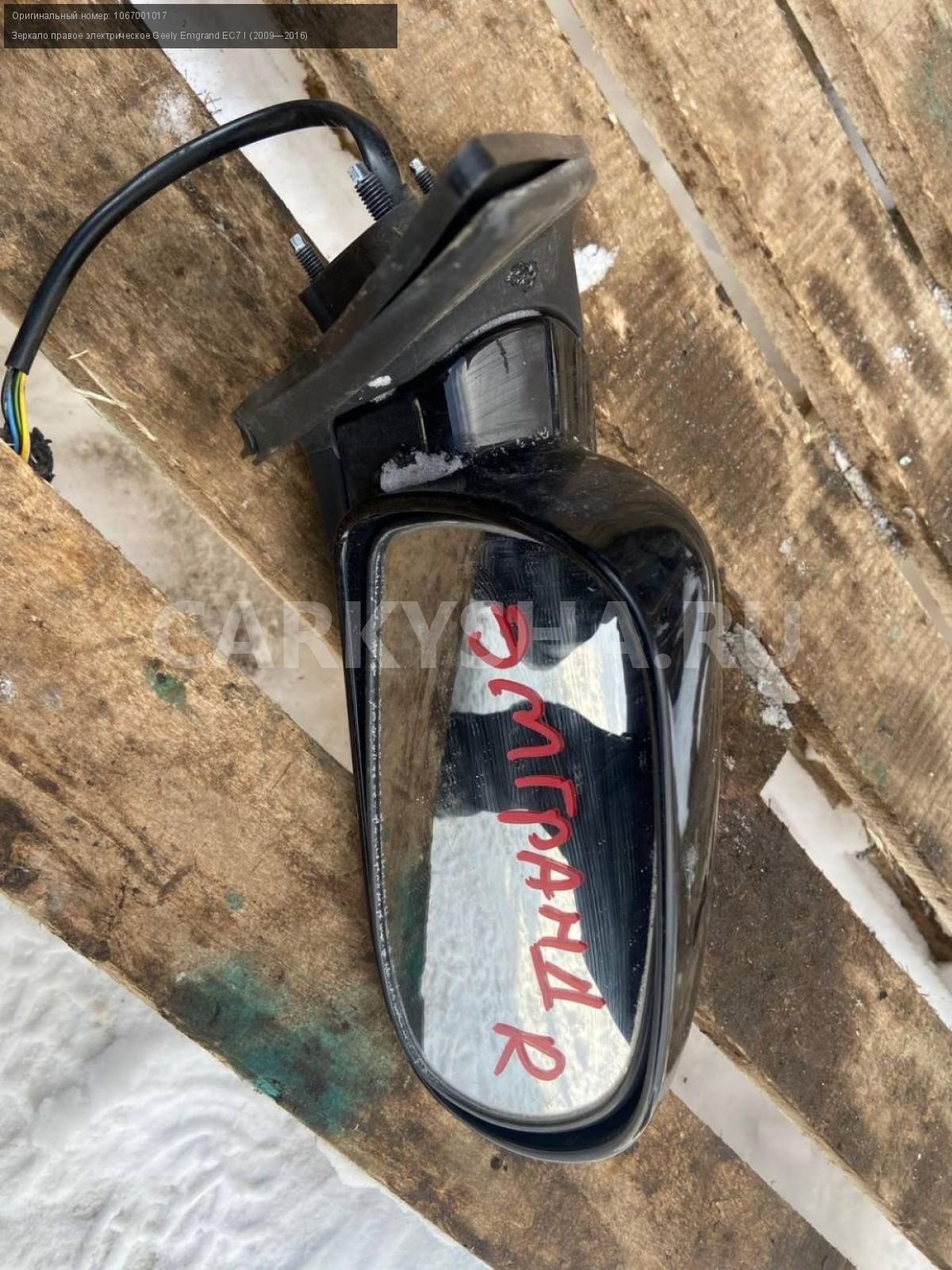 Geely Emgrand EC7 , Зеркало правое электрическое.\nАртикул: 7008\n\nОриг. номер: 1067001017\nПроизводитель: GEELY\nПримечание:Джили Эмгранд ЕС7, зеркало правое электрическое, б/у. \n\nМарка: Geely\nМодель: Emgrand EC7 I (2009—2016)\nГод выпуска: 2013\nКузов тип: Седан\nДвигатель номер: JL4G15D\nМодель двигателя: инжектор\nОбъем: 1.5\nТопливо: Бензин\nКоробка: Механика\nЦвет: Черный\nПраво/Лево: Право\nСовместимости: Geely Emgrand EC7 I (2009—2016) 1.5 MT (98 л.с.)\nСовместимость: