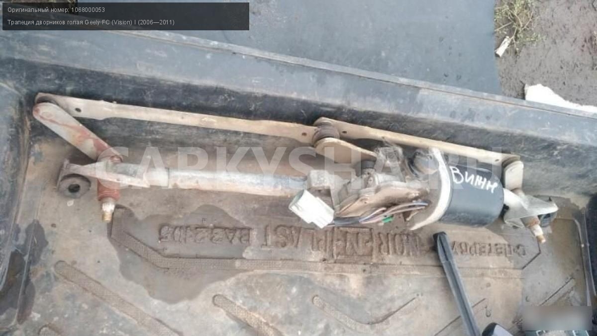 Geely vision трапеция дворников\nАртикул: 1046\n\nОриг. номер: 1068000053\nПроизводитель: GEELY\nПримечание:Geely vision трапеция дворников в сборе.НАЛИЧИЕ ЗАПЧАСТИ УТОЧНИТЕ ПО ТЕЛЕФОНУ ИЛИ В СООБЩЕНИЯХ,б/у, а так же множество авто в разборе, работаем с регионами отправка тк, выкуп авто после дтп по всей России, отправка тк осуществляется после 100% оплаты, наложенным платежом не работаем, стоимость доставки не рассчитываем\n\nМарка: Geely\nМодель: FC (Vision) I (2006—2011)\nКузов тип: Седан\nОбъем: 1.8\nТопливо: Бензин\nКоробка: Механика\nСовместимости: Geely FC (Vision) I (2006—2011) 1.8 MT (133 л.с.)\nСовместимость:
