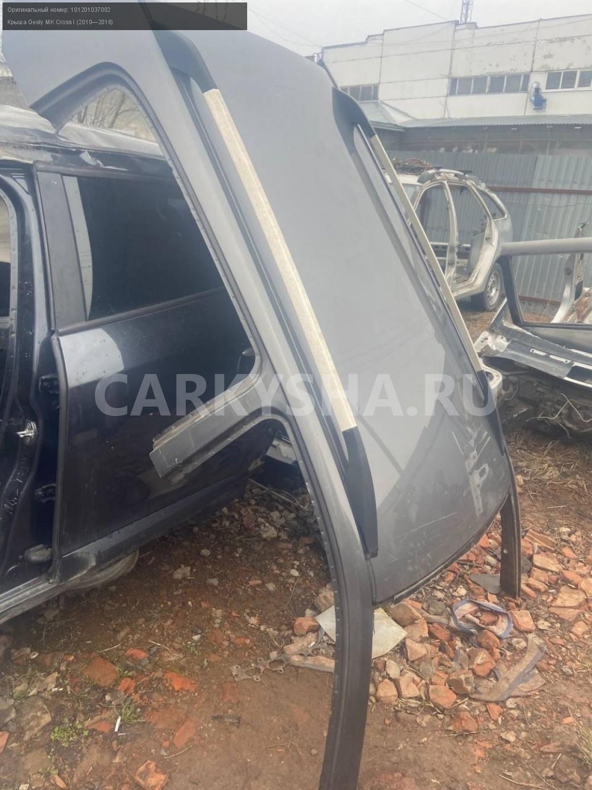 Geely MK Cross, Крыша с рейлингами в сборе.\nАртикул: 7478\n\nОриг. номер: 101201037002\nПроизводитель: GEELY\nПримечание:Джили МК Кросс, крыша с рейлингами в сборе, б/у. \n\nМарка: Geely\nМодель: MK Cross I (2010—2016)\nГод выпуска: 2012\nКузов тип: Хетчбэк\nДвигатель номер: MR479QA\nМодель двигателя: инжектор\nОбъем: 1.5\nТопливо: Бензин\nКоробка: Механика\nЦвет: Стальной\nСовместимости: Geely MK Cross I (2010—2016) 1.5 MT (94 л.с.)\nСовместимость: