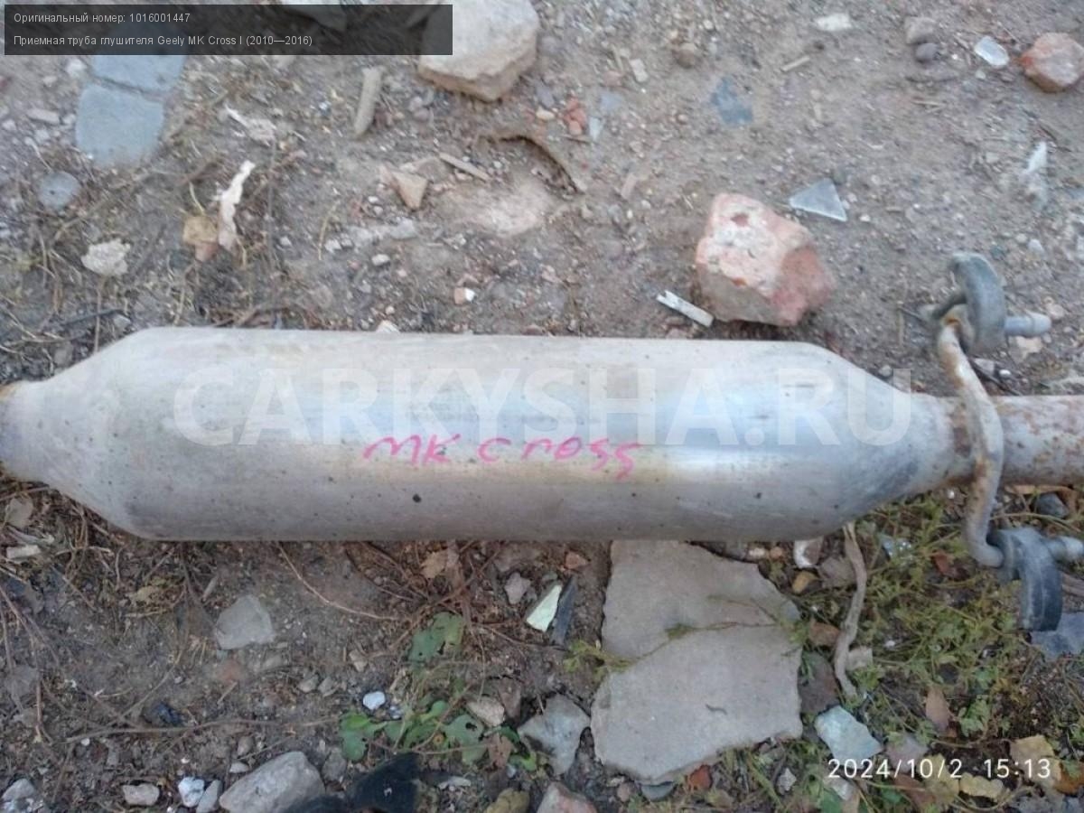 Geely MK Cross, приемная труба с резонатором.\nАртикул: 5885\n\nОриг. номер: 1016001447\nПроизводитель: GEELY\nПримечание:Джили МК Кросс, приемная труба с резонатором, б/у. \n\nМарка: Geely\nМодель: MK Cross I (2010—2016)\nГод выпуска: 2012\nКузов тип: Хетчбэк\nМодель двигателя: инжектор\nОбъем: 1.5\nТопливо: Бензин\nКоробка: Механика\nСовместимости: Geely MK Cross I (2010—2016) 1.5 MT (94 л.с.)\nСовместимость:
