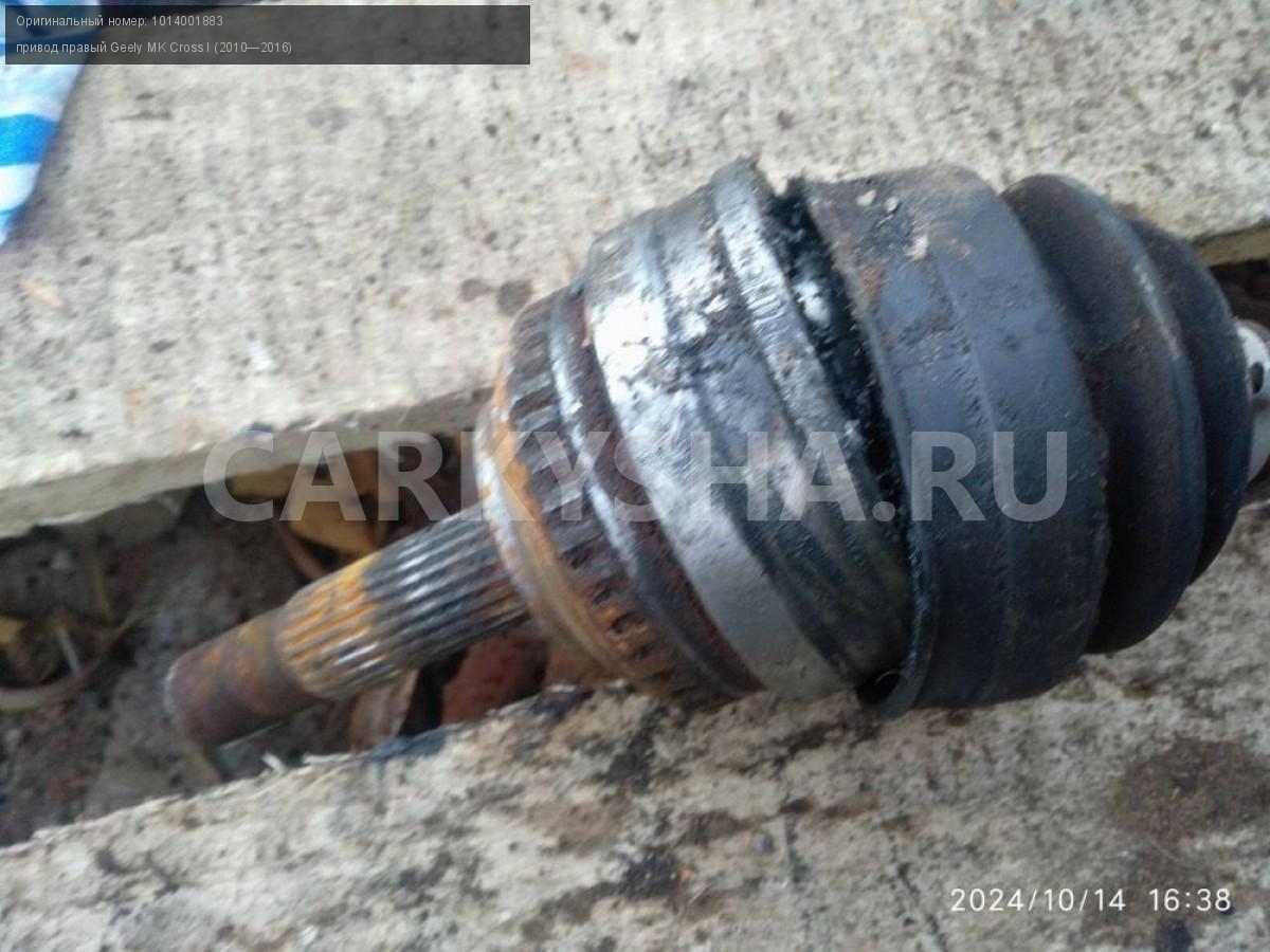 Geely MK Cross, привод правый.\nАртикул: 5943\n\nОриг. номер: 1014001883\nПроизводитель: GEELY\nПримечание:Джили МК Кросс, привод правый, б/у. \n\nМарка: Geely\nМодель: MK Cross I (2010—2016)\nГод выпуска: 2012\nКузов тип: Хетчбэк\nМодель двигателя: инжектор\nОбъем: 1.5\nТопливо: Бензин\nКоробка: Механика\nПраво/Лево: Право\nСовместимости: Geely MK Cross I (2010—2016) 1.5 MT (94 л.с.)\nСовместимость: