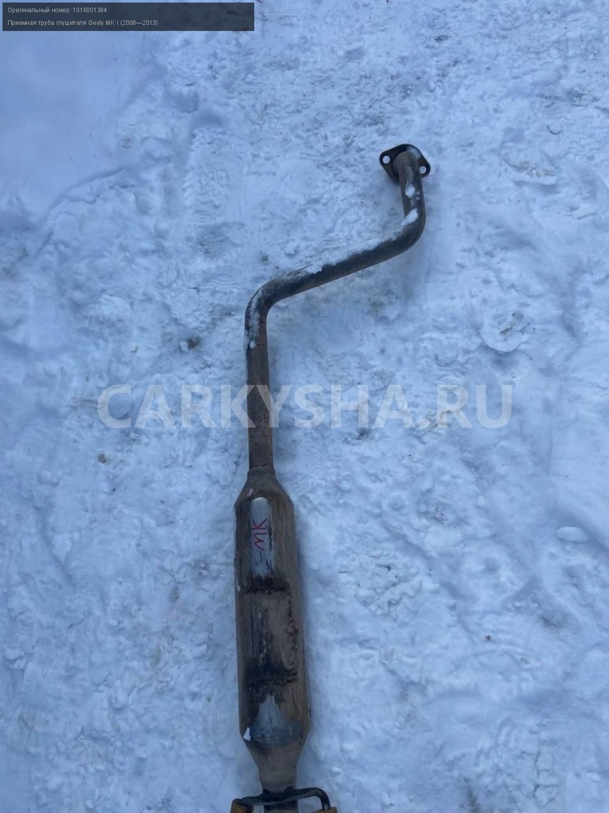 Geely MK, труба приемная с резонатором.\nАртикул: 6884\n\nОриг. номер: 1016001384\nПроизводитель: GEELY\nПримечание:Джили МК , труба приемная с резонатором, б/у. \n\nМарка: Geely\nМодель: MK I (2006—2013)\nГод выпуска: 2012\nКузов тип: Седан\nМодель двигателя: инжектор\nОбъем: 1.5\nТопливо: Бензин\nКоробка: Механика\nЦвет: Белый\nСовместимости: Geely MK I (2006—2013) 1.5 MT (94 л.с.)\nСовместимость: