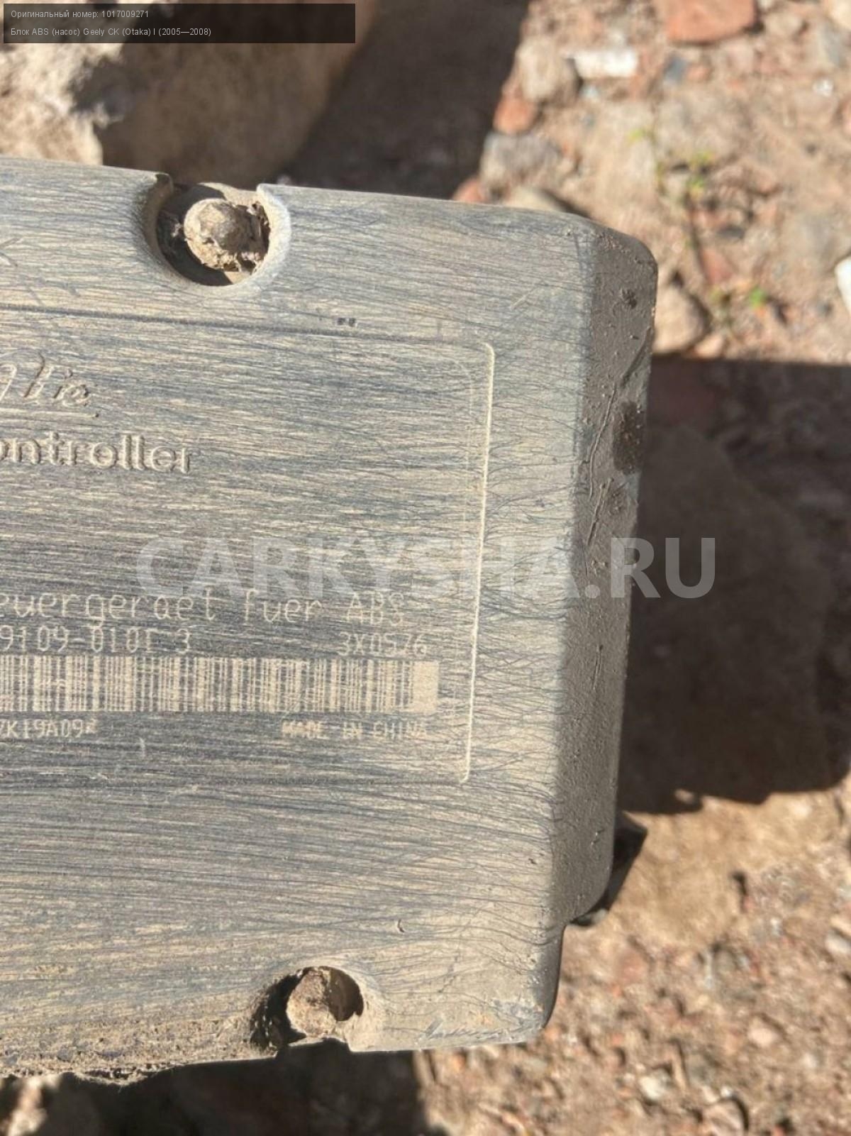 Geely CK (Otaka) I , блок ABS\nАртикул: 2799\n\nОриг. номер: 1017009271\nПроизводитель: GEELY\nПримечание:Джилли СК Отака 1, блок АБС, б/у\n\nМарка: Geely\nМодель: CK (Otaka) I (2005—2008)\nГод выпуска: 2008\nКузов тип: Седан\nДвигатель номер: MR479QA\nМодель двигателя: инжектор\nОбъем: 1.5\nТопливо: Бензин\nКоробка: Механика\nЦвет: Черный\nСовместимости: Geely CK (Otaka) I (2005—2008) 1.5 MT (94 л.с.)\nСовместимость: