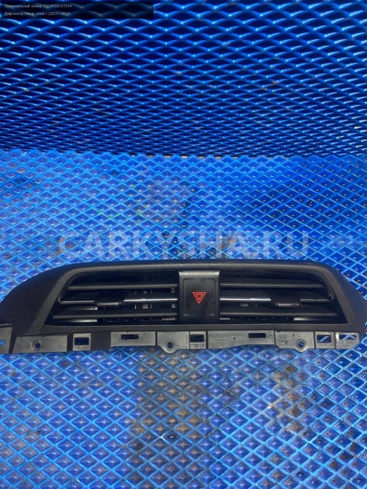 Haval Jolion, дефлектор торпедо центральный.\nАртикул: 8330\n\nОриг. номер: 5306600XST01A\nПроизводитель: Haval\nПримечание:Хавал Джулион, дефлектор торпедо центральный, б/у. \n\nМарка: Haval\nМодель: Jolion I (2021—2026)\nГод выпуска: 2022\nКузов тип: Внедорожник\nМодель двигателя: инжектор\nОбъем: 1.5\nТопливо: Бензин\nКоробка: Робот\nСовместимости: Haval Jolion I (2021—2026) 1.5 AMT (143 л.с.)\nСовместимость: